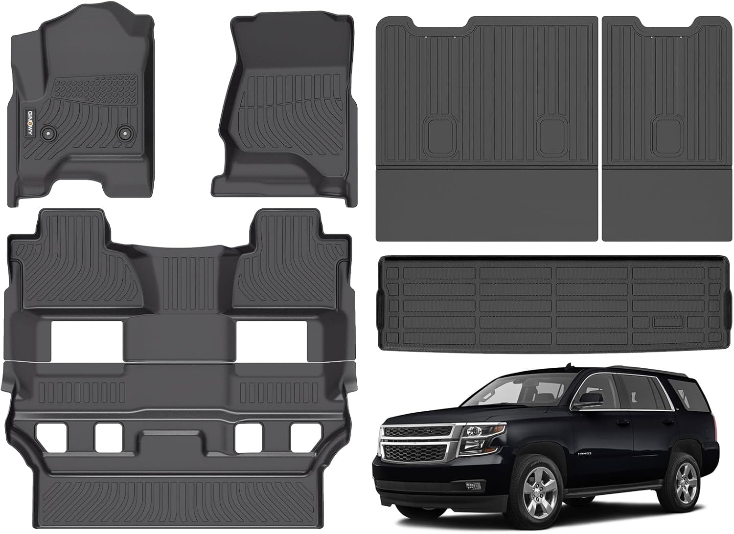 GINOWY- Floor Mats & Cargo Liner for Chevy Tahoe 2015-2020 & GMC Yukon (Only Bucket Seat), TPE All Weather Tahoe Car Floor Mats, Non-Slip Backrest Mat Waterproof Floor Liners Accessories Black