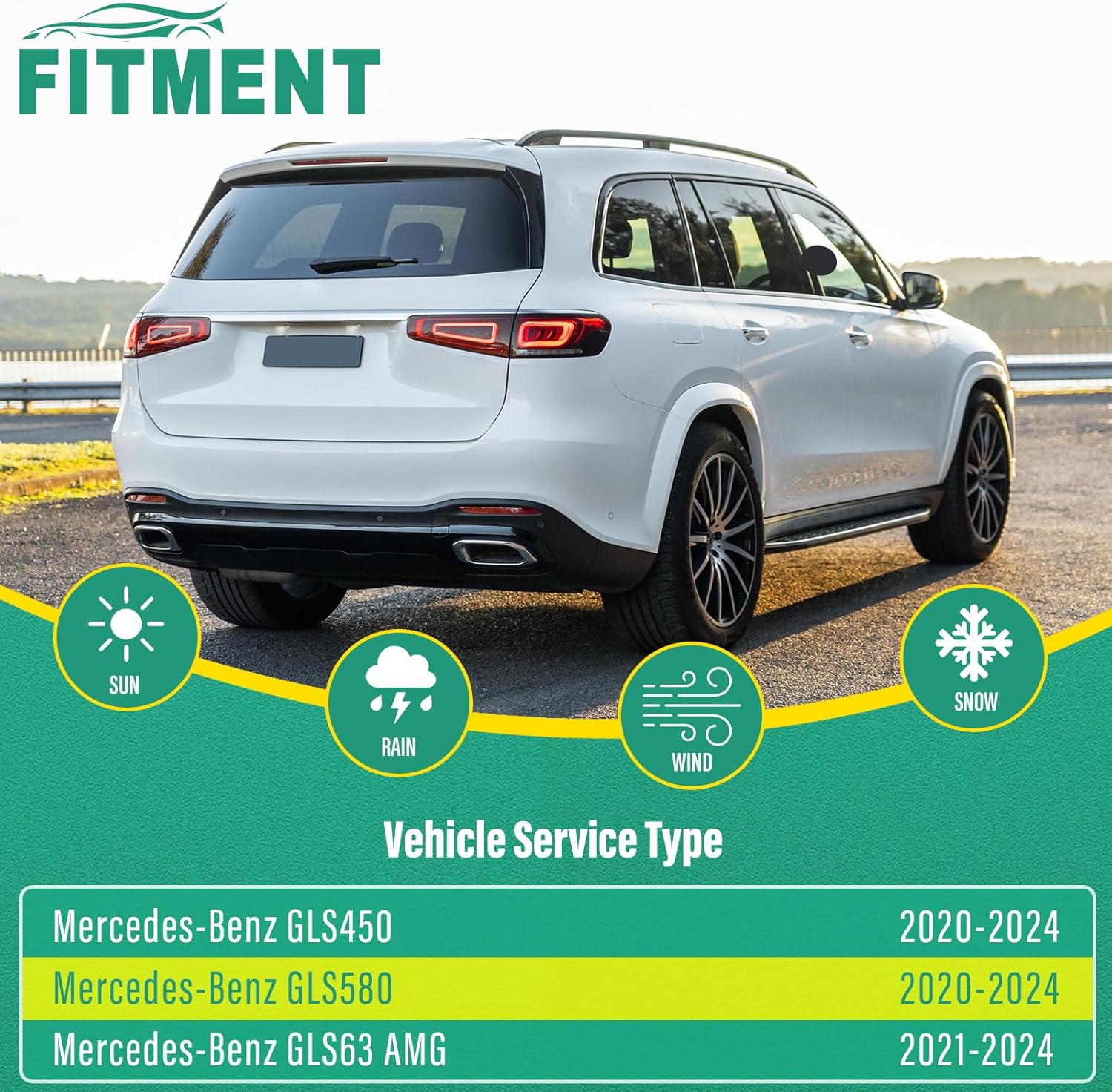 - [FITMENT2]: Replacement for 2020 2021 2022 2023 2024 Mercedes-Benz GLS 580 26inch + 22inch front with 11inch rear windshield wiper blades.
