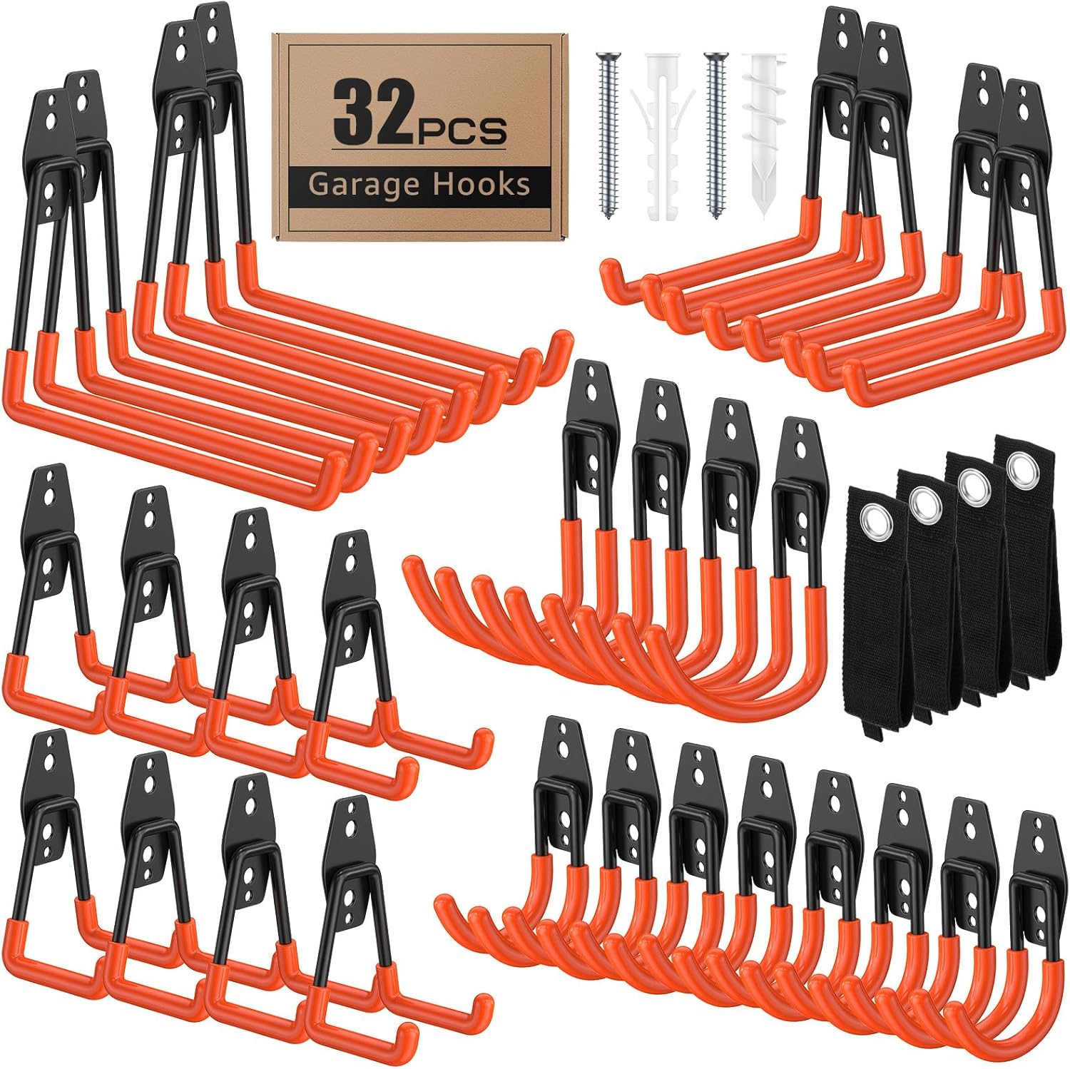 32 Pack Garage Hooks with Anti-Slip Coating Heavy Duty Wall Mount Hooks for Garage Storage and Hanging Hoses Bike Garden Tools Ropes etc