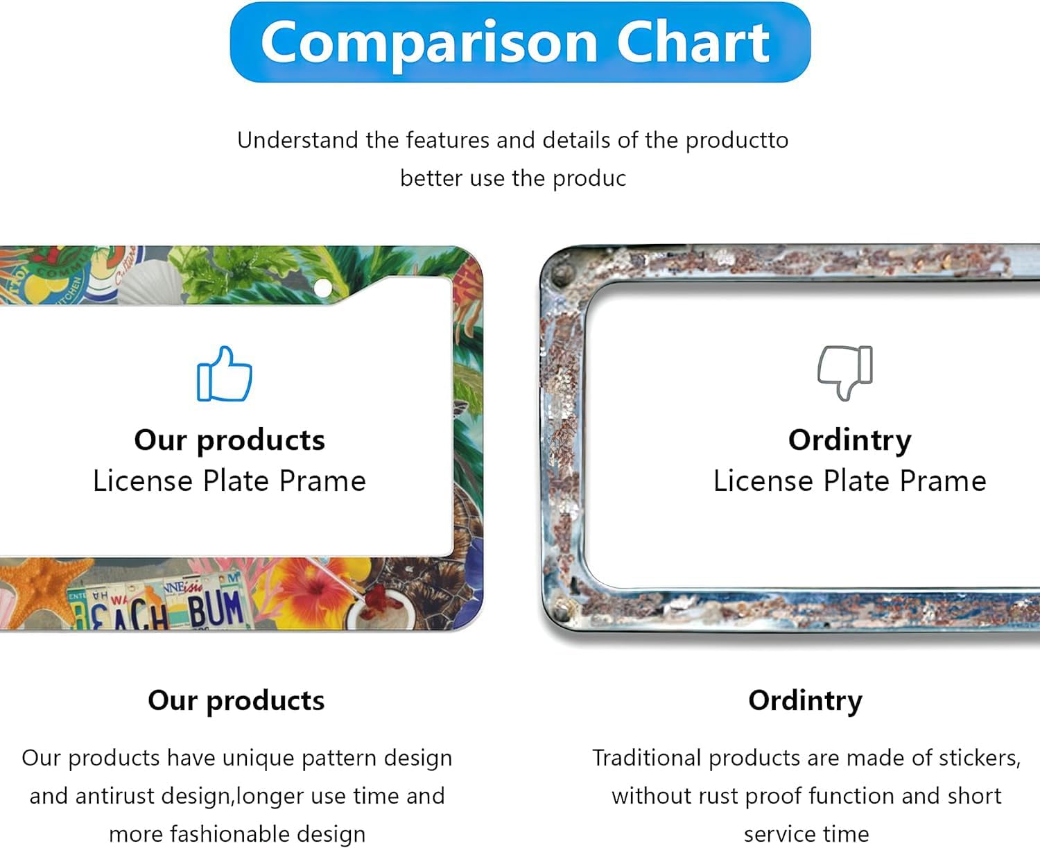 - ▶Exquisite Design: This summer beach license plate frame is designed with high-definition printing, which perfectly presents the rich colors and patterns of the license plate frame, it is durable and will not fade.