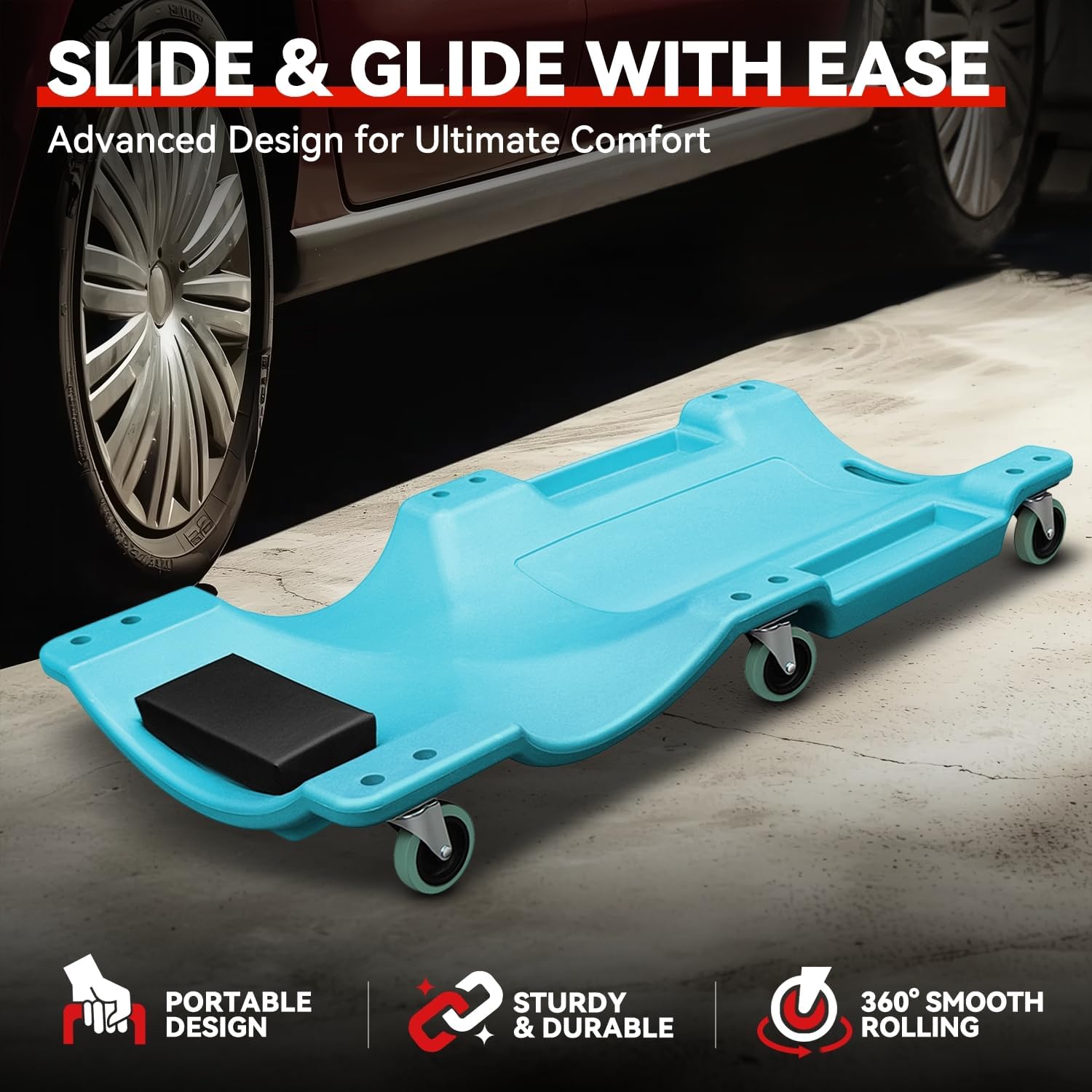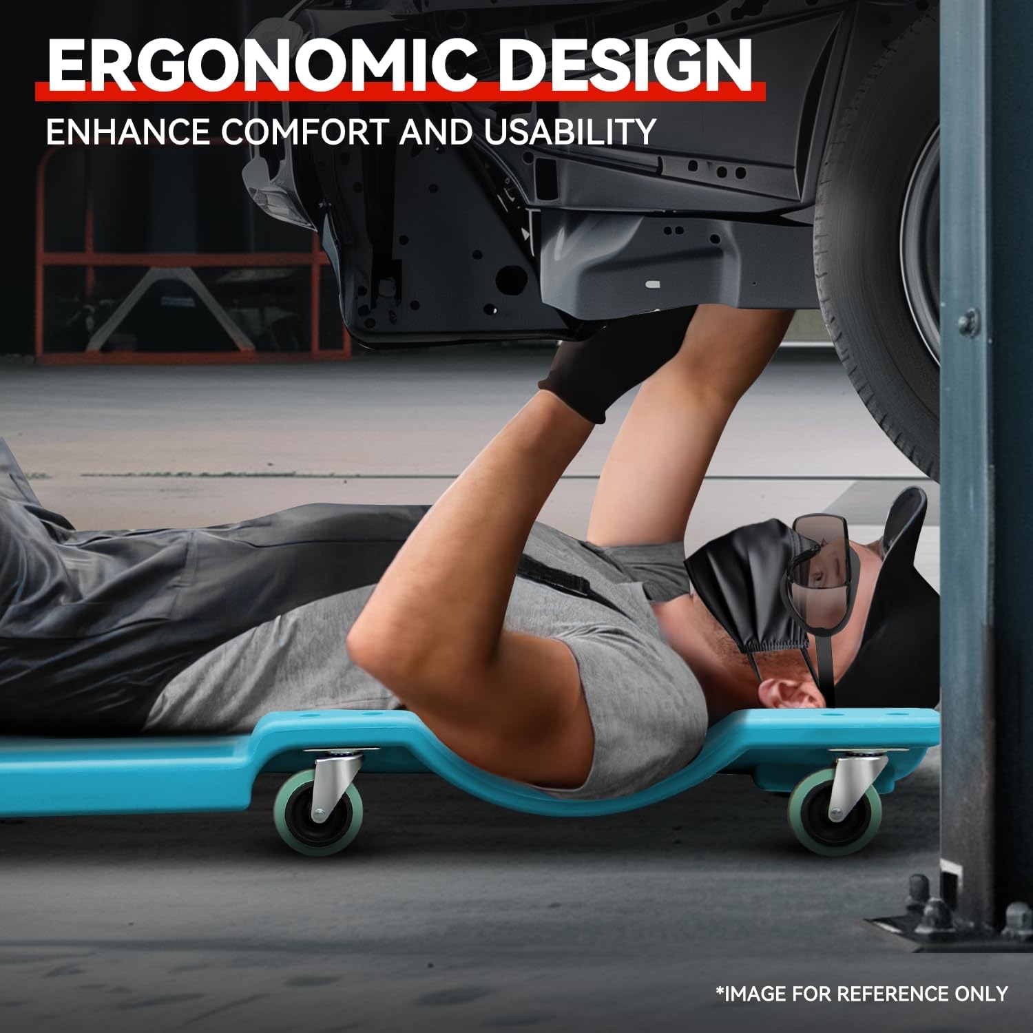 Auto Dynasty 40 Inches Mechanic Creeper, Automotive Garage Repair Low Profile Under Car Rolling Creeper with Padded Headrest, Plastic, Sky Blue