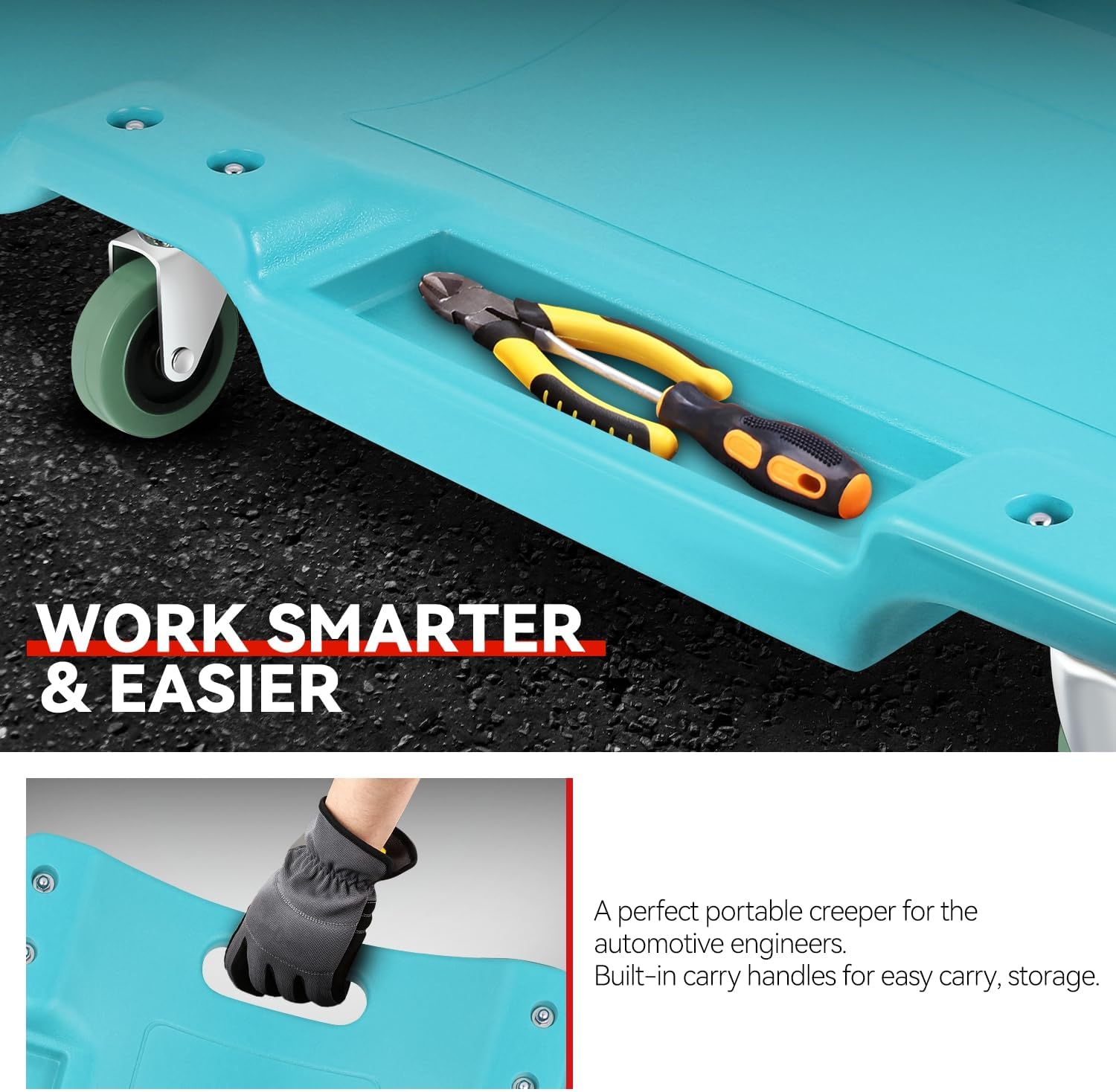 - Portable Style: This 40 inch low profile creeper can also make it easy to pick up, position, and transport with the bottom-positioned carrying handle, which ensures the work in your garage or workshop with ease.