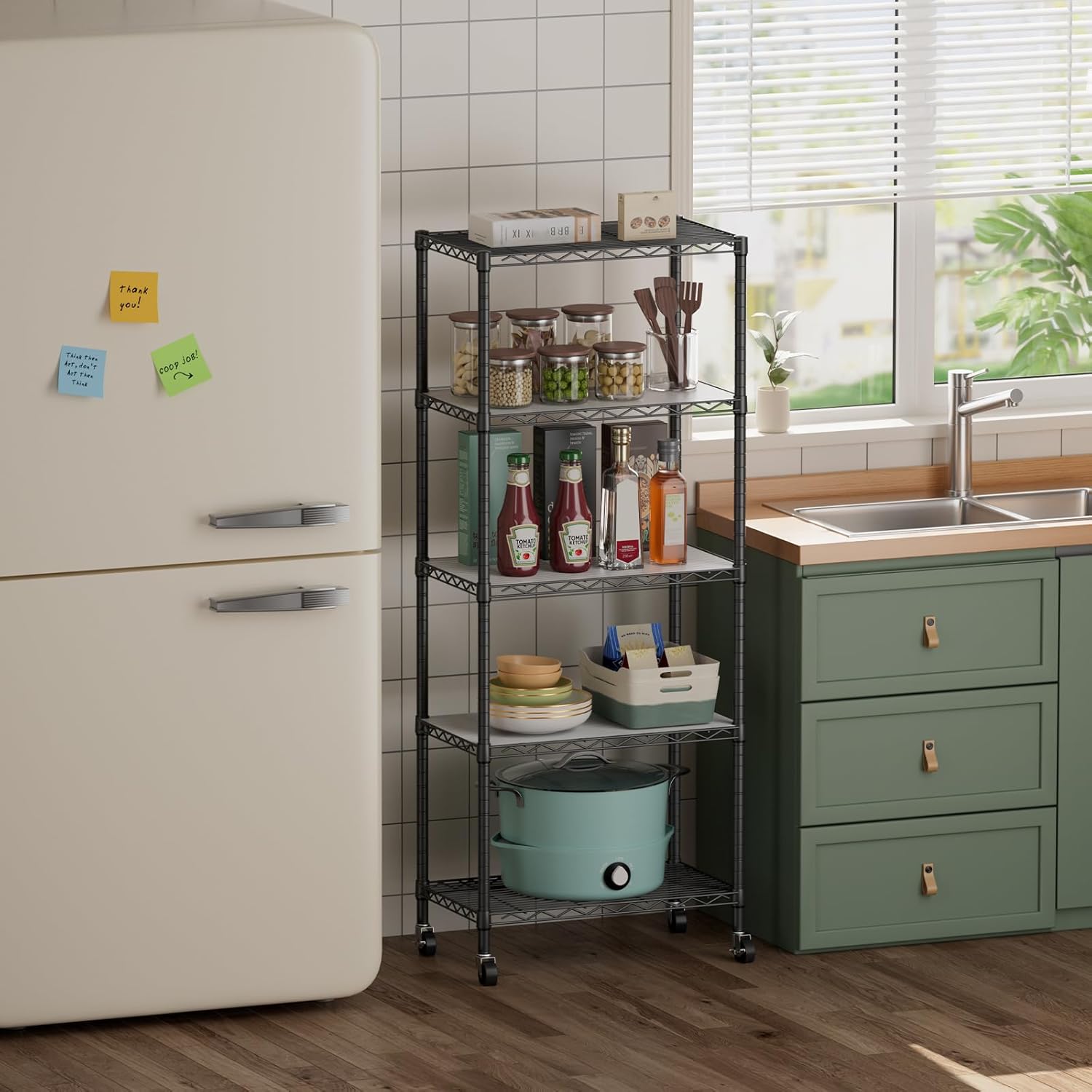 - Convenient Home Storage: Metal wire shelves with adjustable spacing make perfect for narrow spaces or room corners such as kitchens, bathrooms, laundry rooms, balconies, garages, entries, or offices.