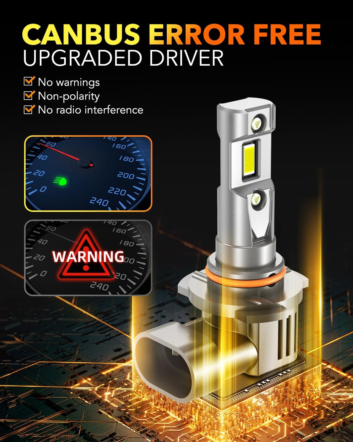 - 【Efficient Cooling System】 Constructed with aviation-grade aluminum and a high-speed cooling fan, these bulbs rapidly dissipate heat, extending lifespan up to 60,000 hours for long-lasting performance.