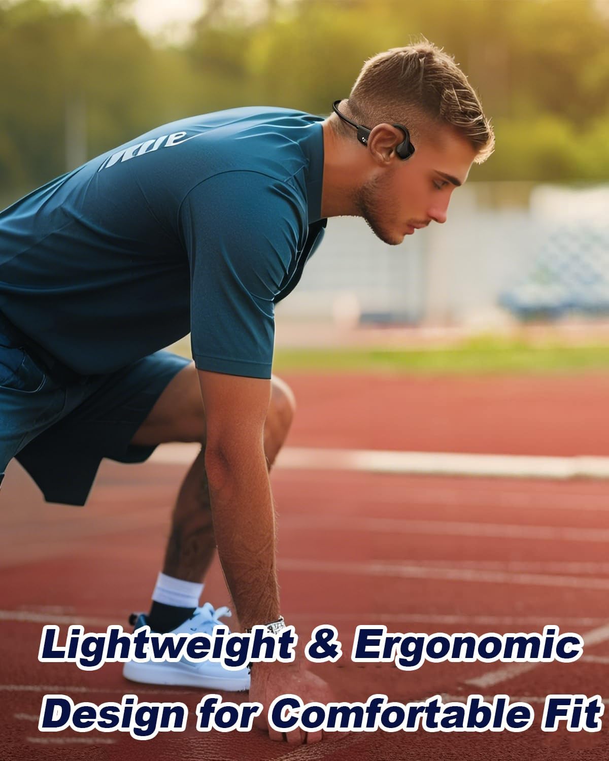 Bone Conduction Headphones Open-Ear Bluetooth 5.0, IP65 Waterproof Wireless Sport Headset with 8H Playtime, Secure Fit for Running/Cycling/Gym, HD Audio w/Mic (2025 Upgraded)