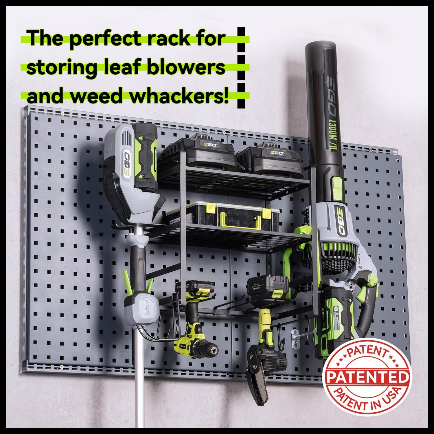 - Leading Leaf Blower Hanger Compatible: Designed with a universal blower slot, this organizer provides a convenient storage solution for blowers of various sizes and brands. No matter the shape, your blower will stay securely mounted, making it easy to access whenever you need it. This thoughtful design helps maintain a clean and organized workspace, while ensuring your tools are always within reach.For non-compatible but handled models, you can also hang them on the included mover hooks.