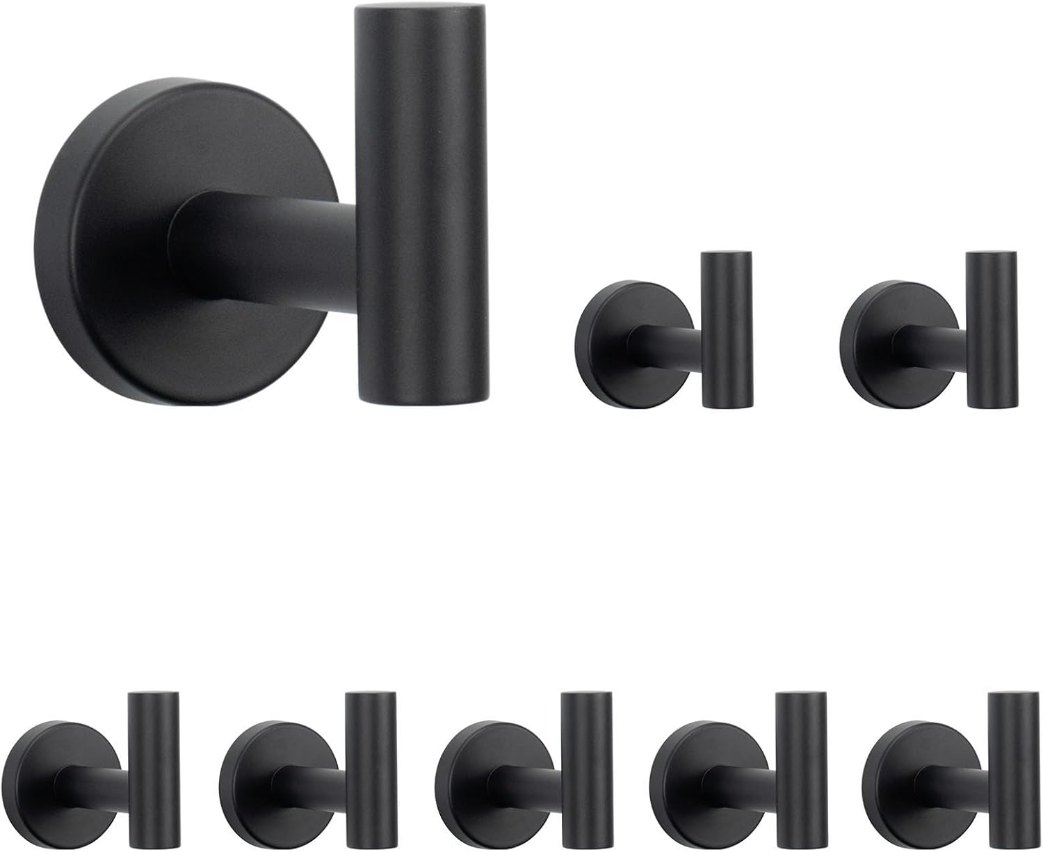 NearMoon Bath Towel Hooks- SUS 304 Stainless Steel Robe Hook Holder, Heavy Duty Coat Hook for Bathroom Livingroom Hotel Kitchen Garage, Wall Mounted (Matte Black, 8 Pack)