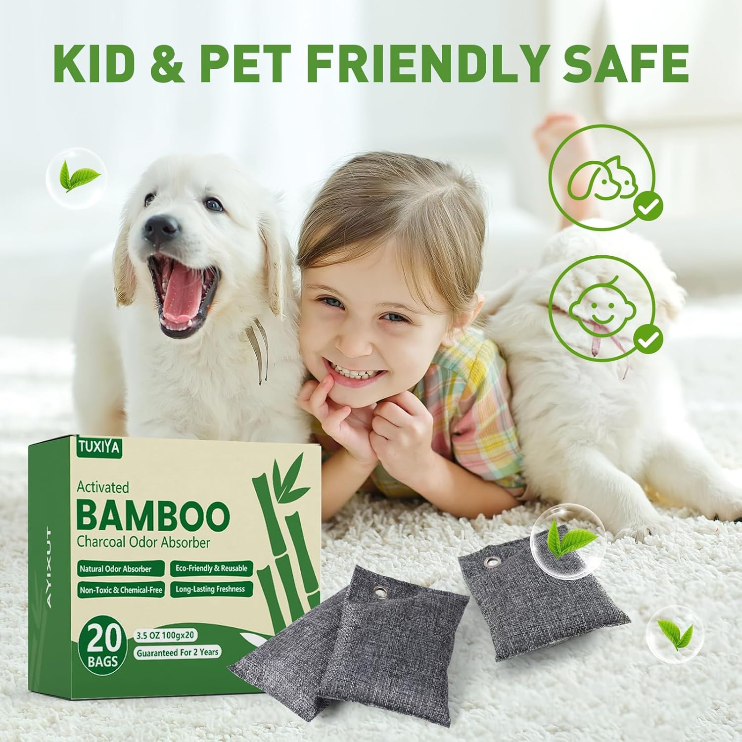 - 【Natural, Non-toxic, and Safe】:Natural bamboo charcoal bags breathable flax packaging with a breathable design trap odors without scattering charcoal. Ideal for shoes, pet areas, and homes—safe, scent-free, and effective for kids and pets.