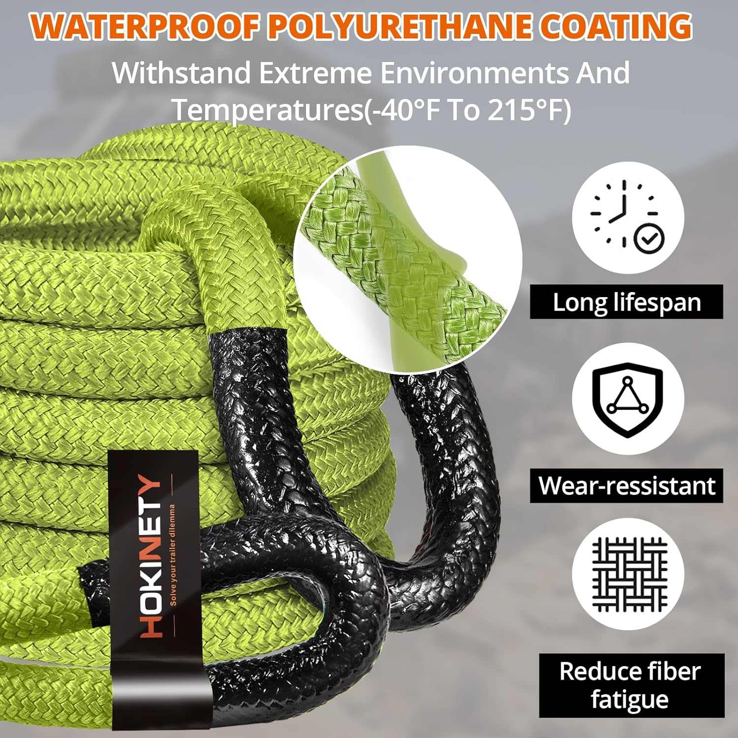 - 【Safety Use Reminder】Towing ropes may be impacted by steep slopes, challenging road conditions, or sudden acceleration. For safer use, it is recommended using a heavy-duty vehicle recovery rope with higher load capacity. Our HOKINETY offroad power stretch snatch rope has a safety factor of 1:4 and undergoes over 200 rigorous quality checks, ensuring confident usage