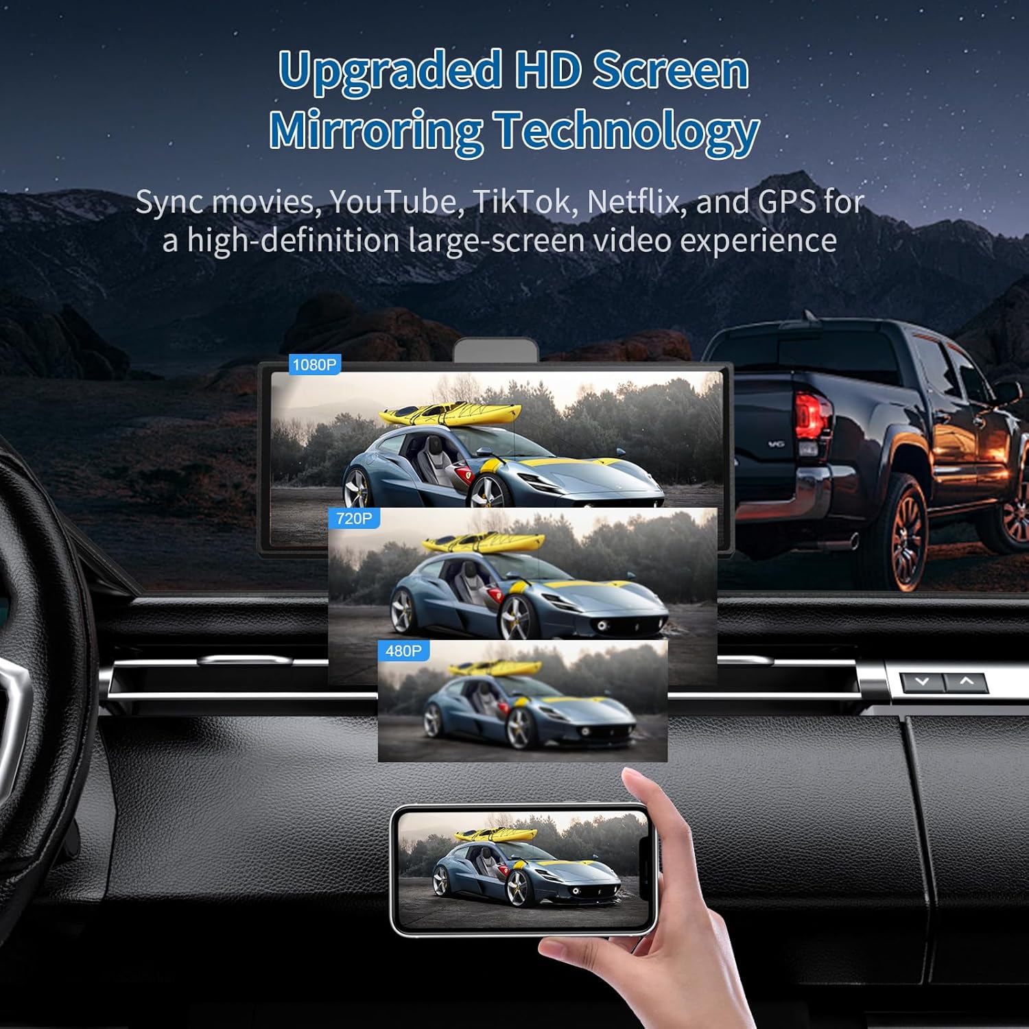 - AirPlay/Android Cast: The portable carplay screen supports smartphone mirror connection function for Android and iOS. Enlarge the small screen content of your phone to a 10.26 inch large screen, which can greatly enhance your viewing experience, especially suitable for watching movies, TV dramas, etc., making the picture clearer, the color richer, and the immersion stronger. Placing mobile applications on a large screen helps improve the visual experience, making it easier to read and use.
