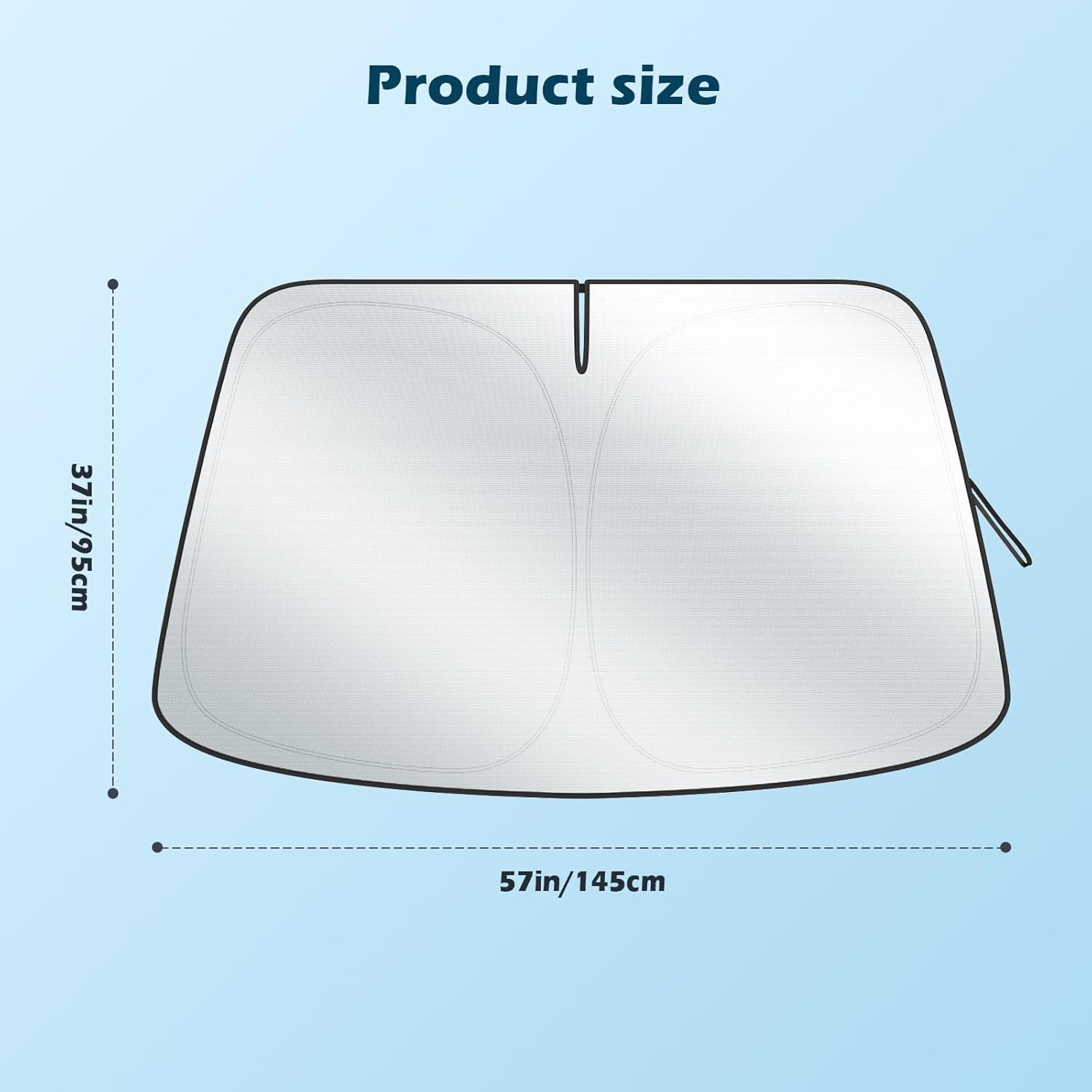 Car Windshield Sun Shade, 300T Thickened Car Window Shades Heat Reflective Interior Cool, Universal Fit for Most Cars SUVs Trucks, Foldable & Portable Design (for Tesla Model 3/Y (57'' × 37''))