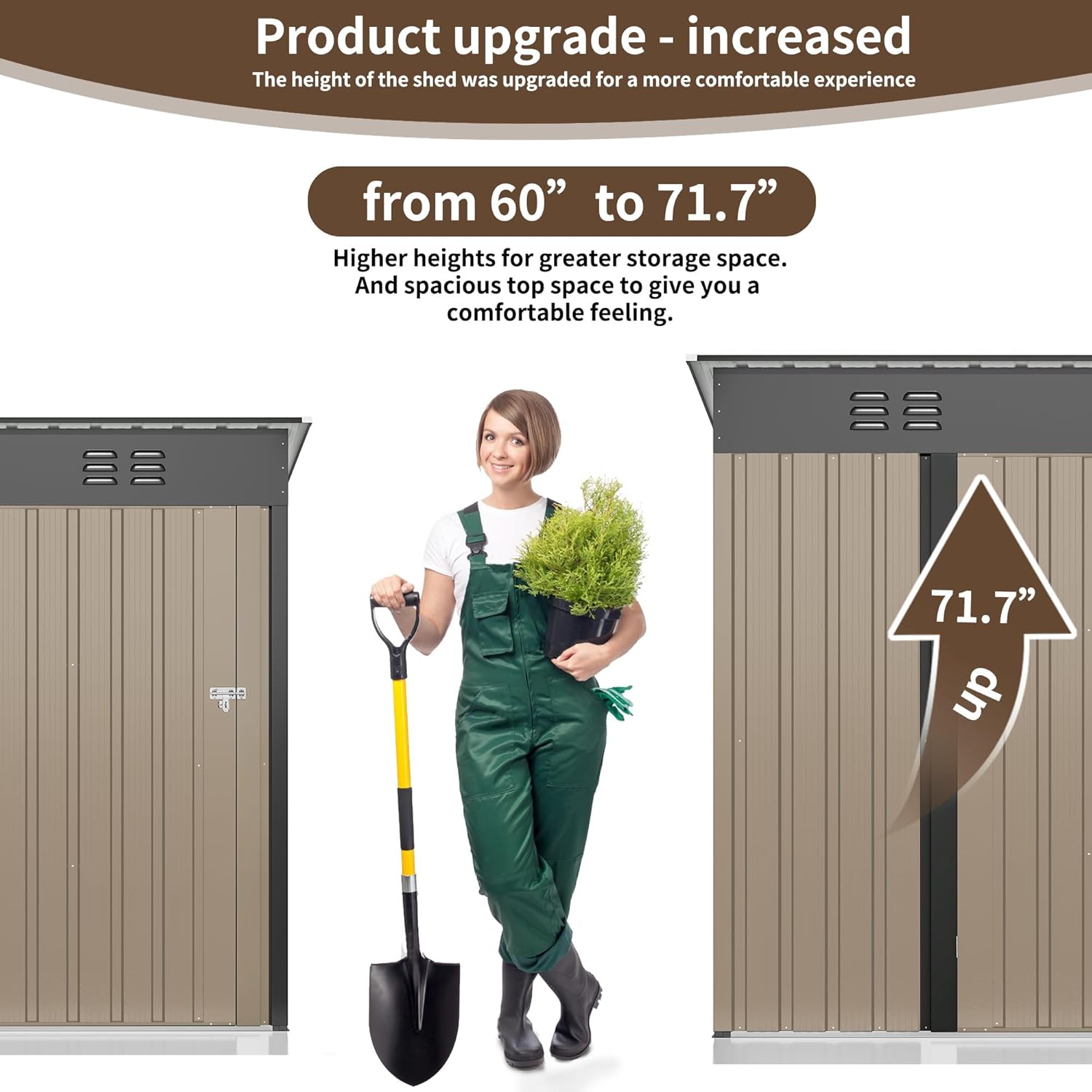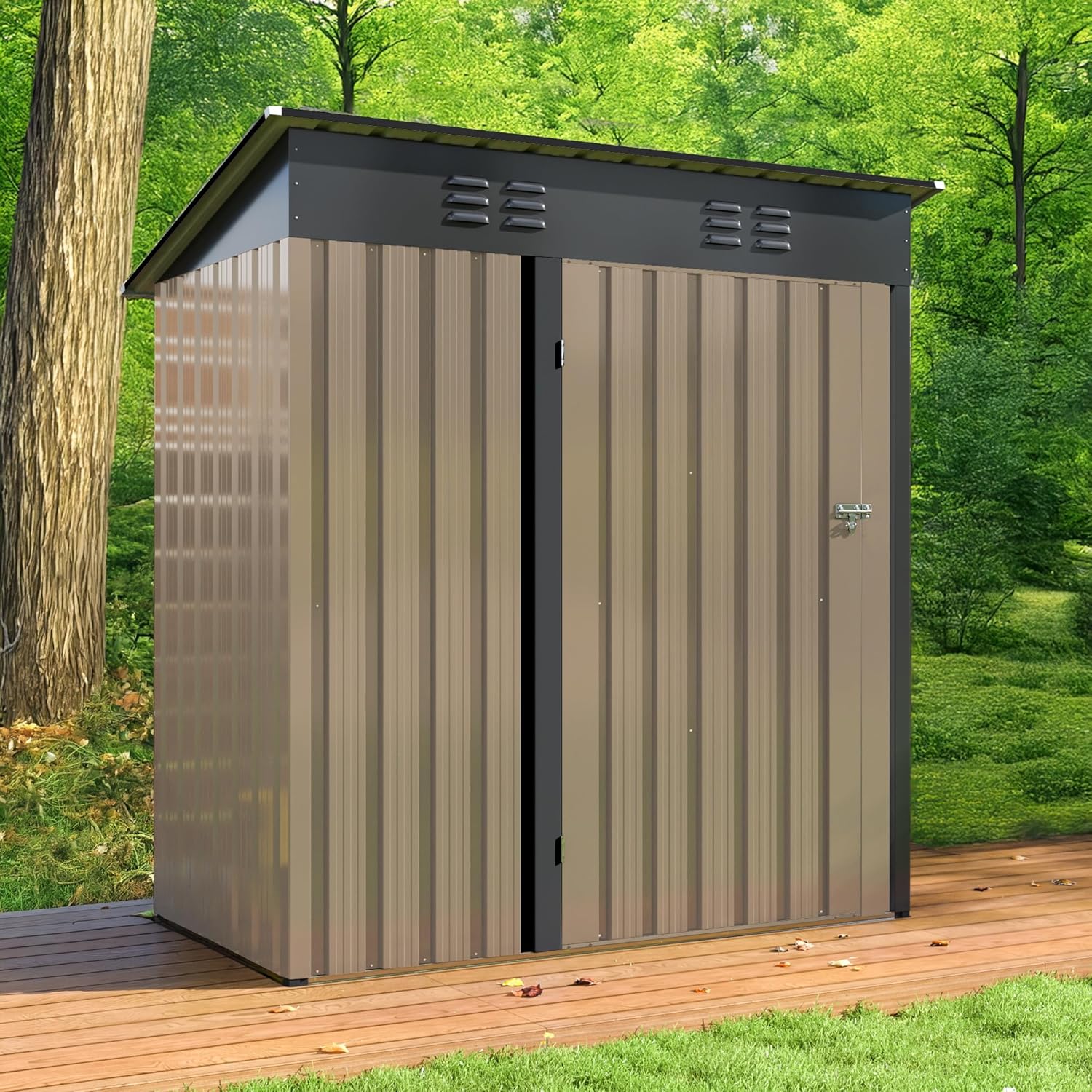 WKM 5x3 FT Outdoor Storage Shed, Utility Metal Tool Storage with Lockable Doors and Updated Frame Structure, Large Metal Garden Shed for Backyard, Patio Lawn,Brown