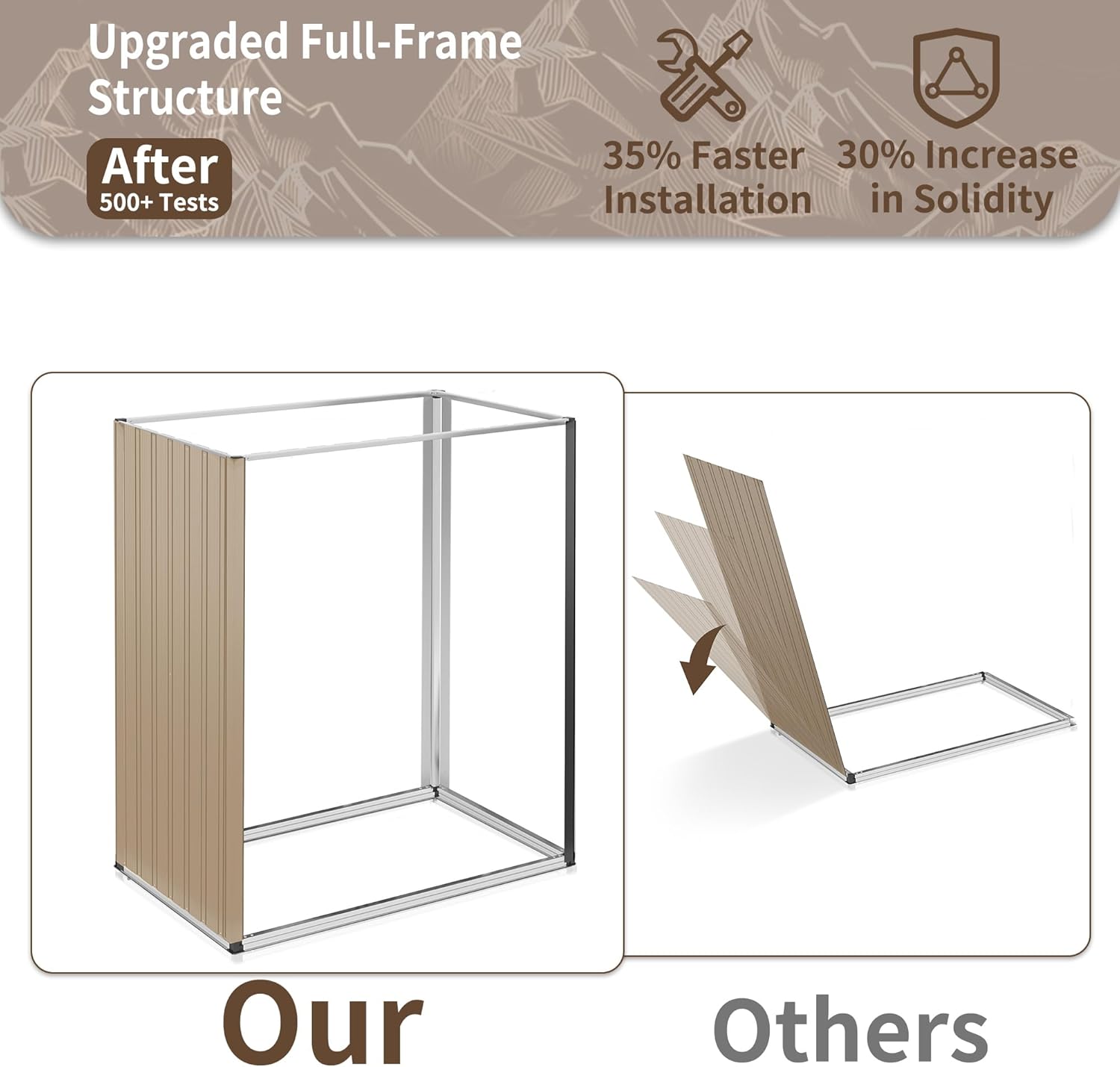 - 【Detailed Functional Design】Our storage shed house is designed with a sloped roof and 2 vents for easy access and ventilation and smoother air flow. The oversized carport kit is supported internally by reinforced metal beams and overlapping wall panels for added thickness and overall strength.