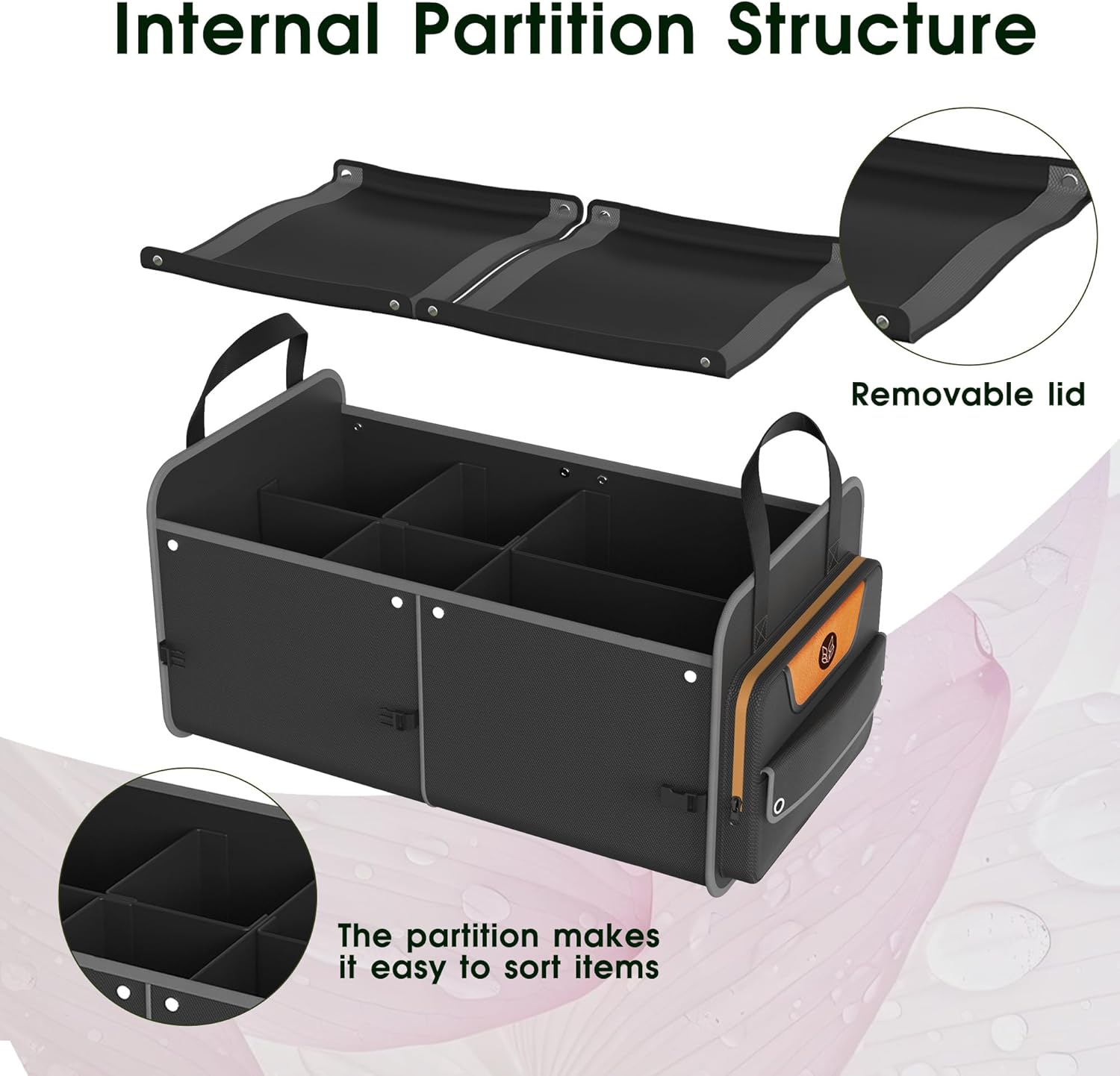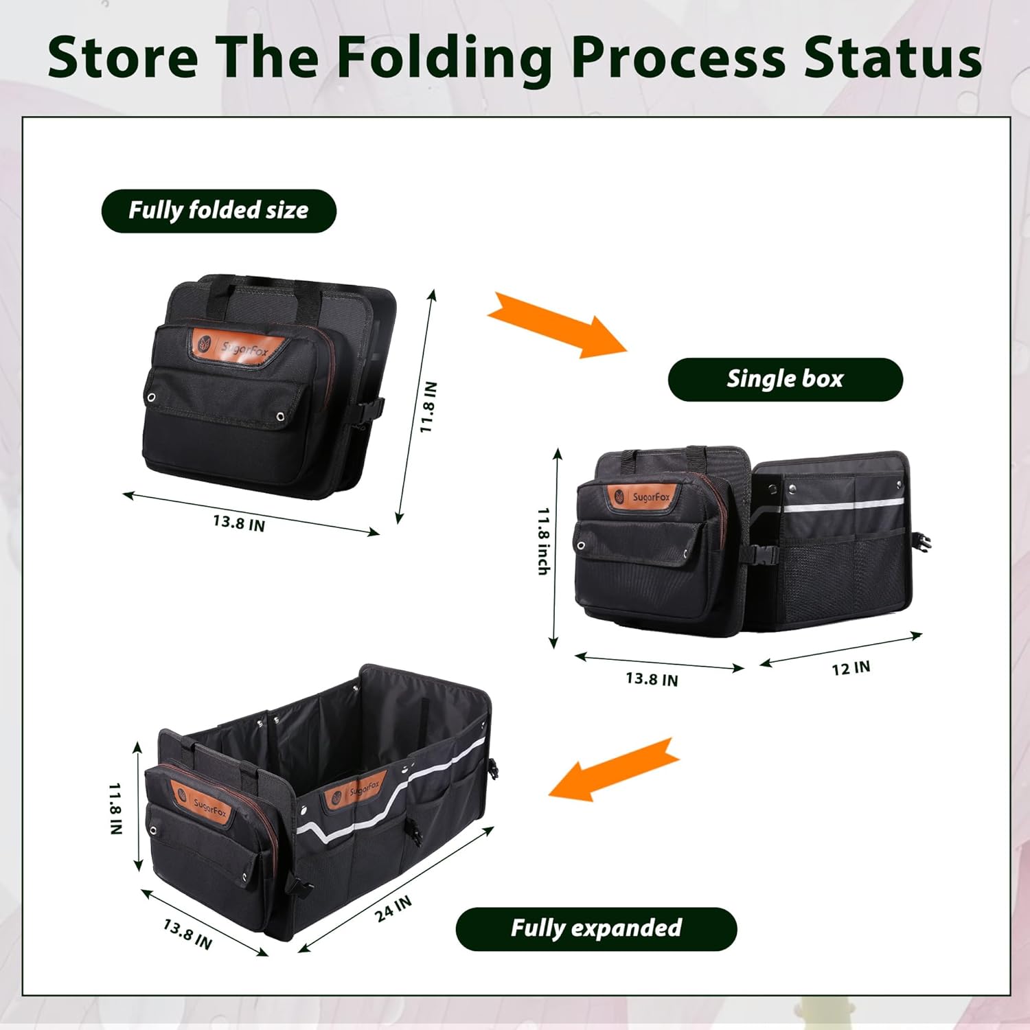 Foldable Waterproof Car Organizer with Non-Slip Traction Rope, 23.2”x13.8”x11.8” Heavy-Duty Trunk Organizer for SUV, Car Essentials List, Portable Vehicle Organizer,BLACK-M003