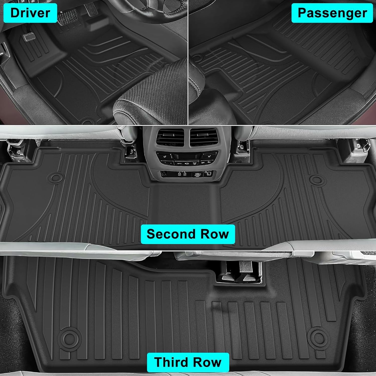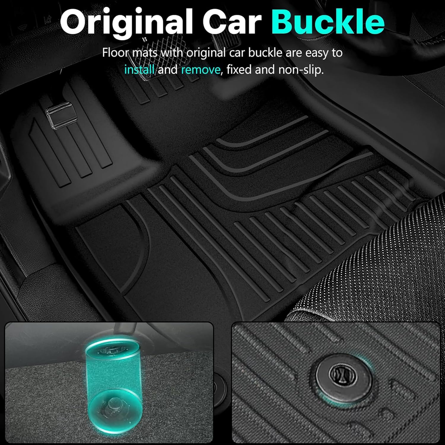 - ăEasy to Install and Cleană The simple installation and removal design makes it easy for users to replace the custom floor mats at any time. Regardless of grime, spills or debris, simply wipe or remove them for flushing to easily maintain a tidy three-row and trunk space.