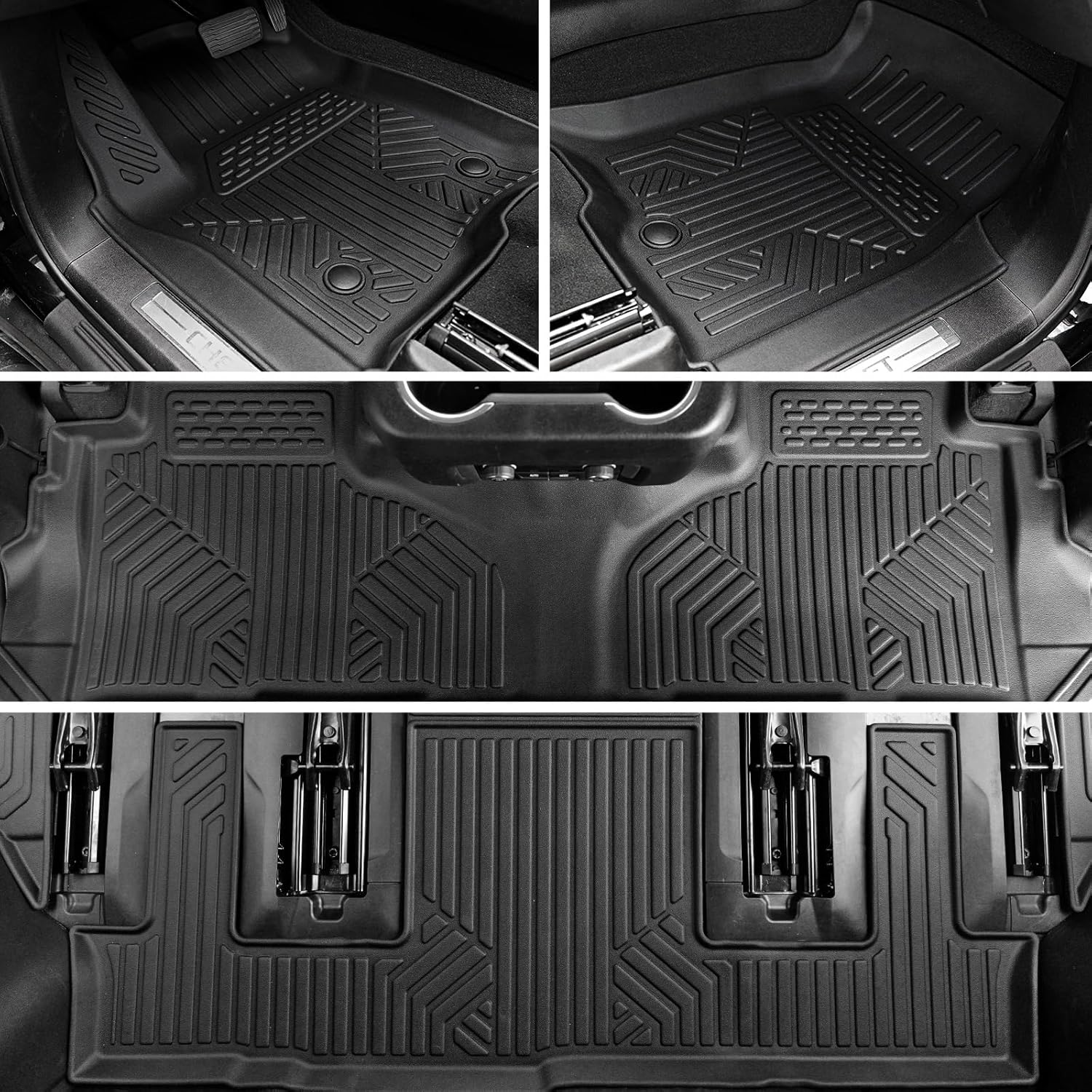 - Custom Fitment: Precisely engineered with 3D laser scanning for 2021 2022 2023 2024 2025 Chevy Tahoe / GMC Yukon with 7-passenger seating (2nd-row Captain's Chairs). Not fit Yukon XL/Suburban. Includes floor mats, cargo liner, 3rd row seat back protectors, 2PCS inter and 4PCS outer door sill guards β 40% more components than standard sets