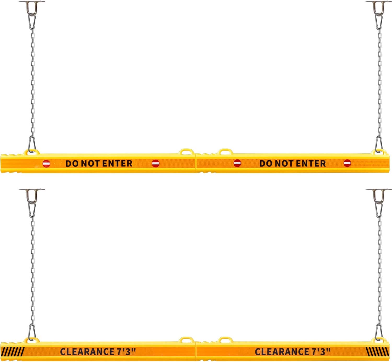 78" Parking Garage Height Clearance Bar - DO NOT ENTER & CLEARANCE 7' 3" - Hanging Crossbar by Chains, Yellow Reflective Parking Signs for Parking Lot, Warehouse, Garage Entrance and Exit