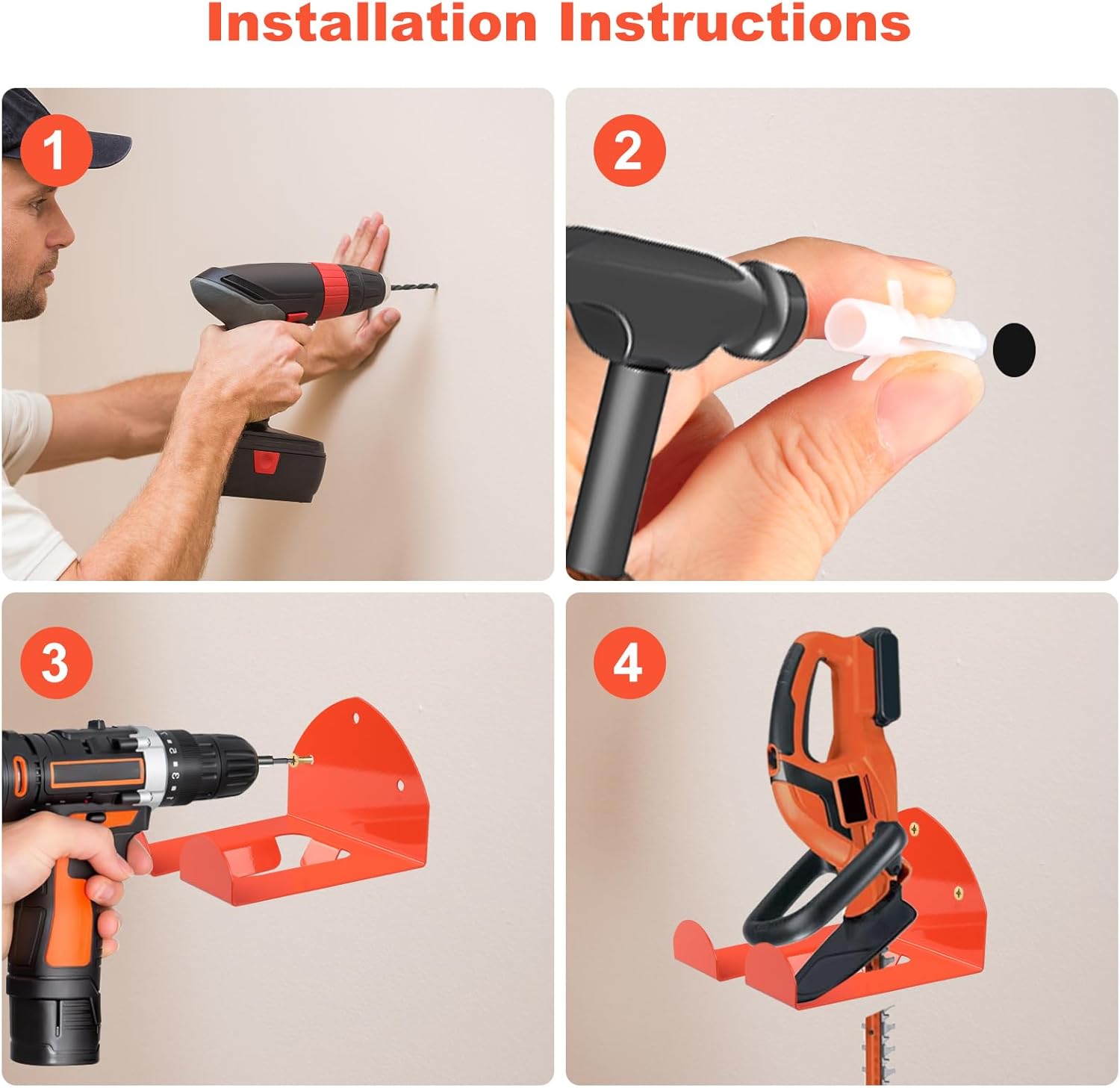 - 【Easy Wall Mount Installation】 The garage trimmer wall mount fits drywall, wood, concrete, and brick walls. Simply drill holes, insert the included screws & expansion tubes, and tighten – no hassle!