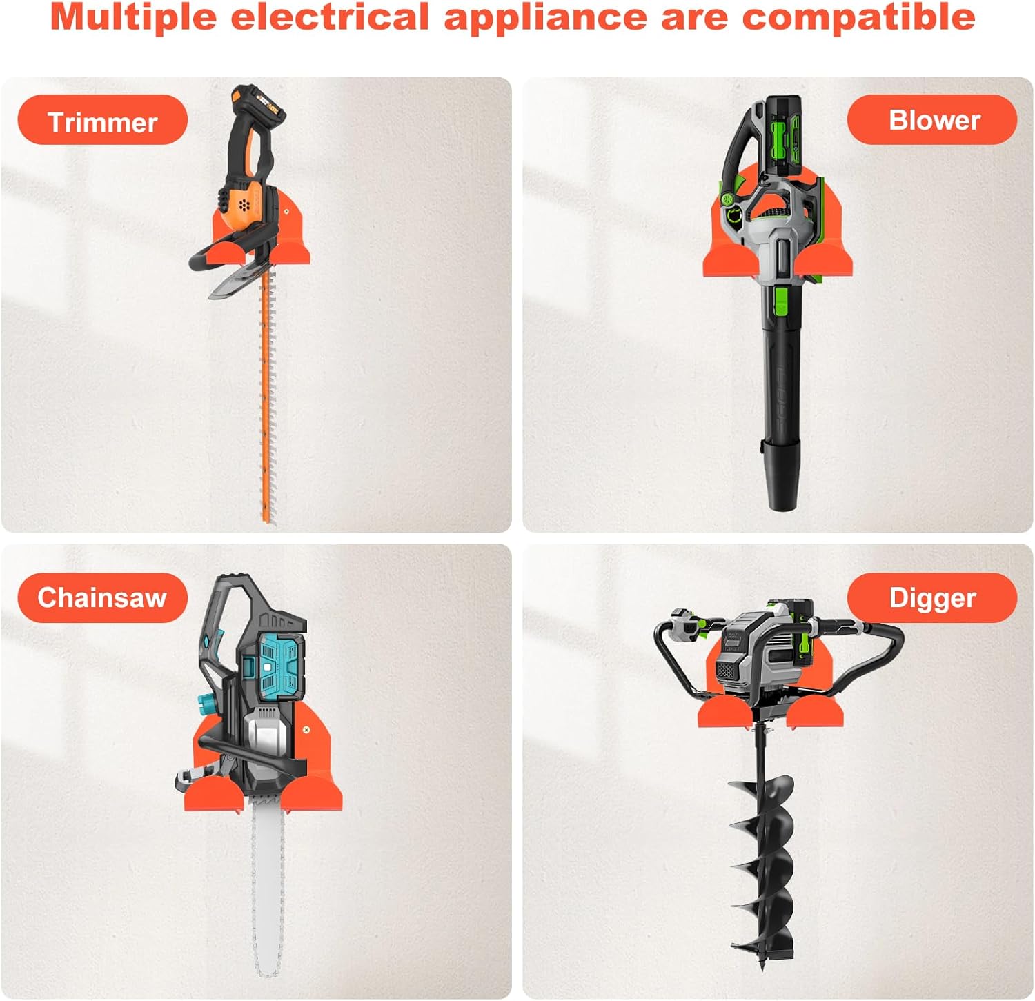 - 【Multi-Purpose Drill Rack】 Beyond trimmers, this weeds eater rack can organize brooms, leaf blowers, ladders, shovels, drills, bikes, hoses, and more.Ideal for garages, sheds, gardens, farms, and workshops—keeping your space clutter-free!