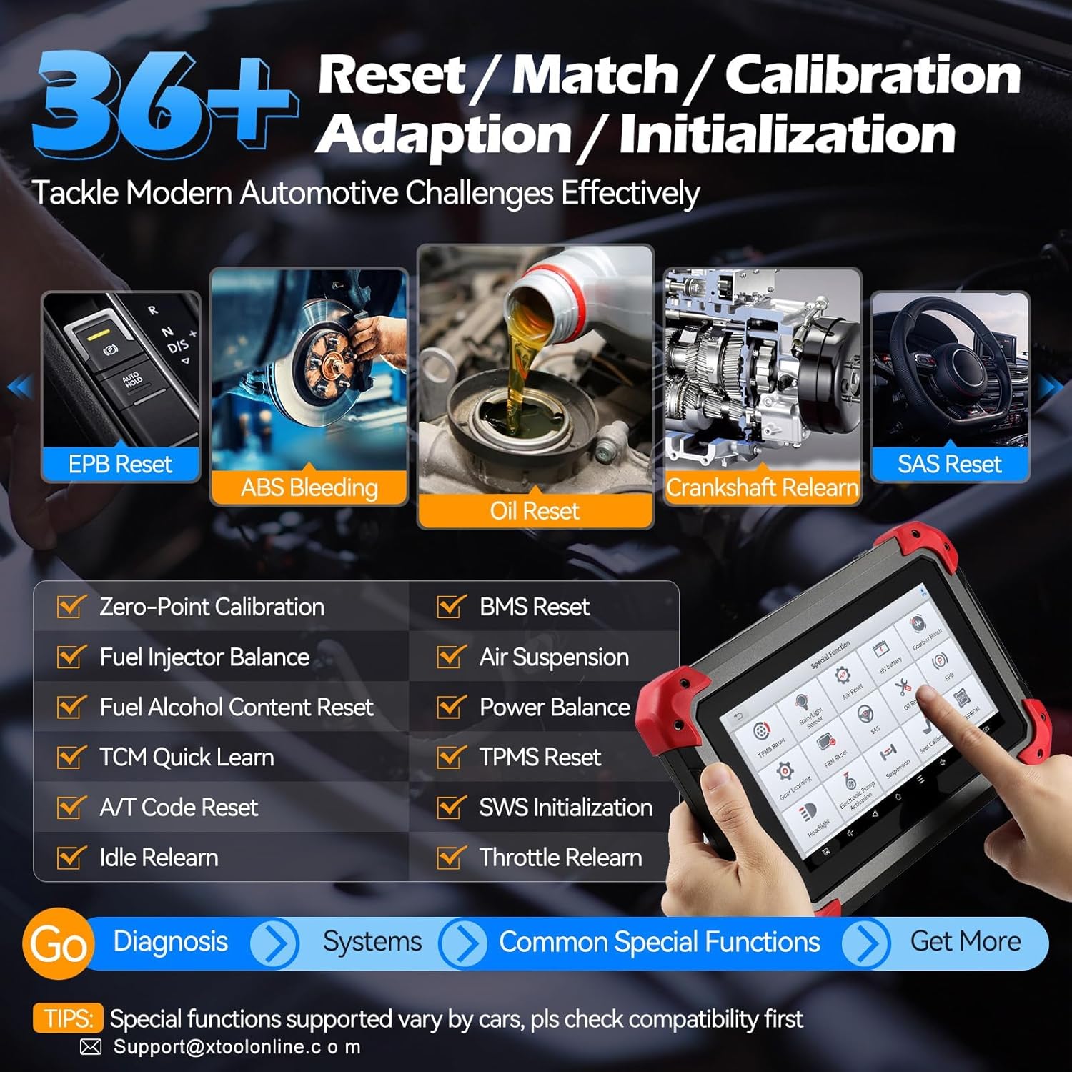 - 36+ Resets Resolve 90% of Repair Challenges:Check engine code reader with resets help you do basic services like oil reset only, design for/built for mechanics and advanced DIYers, this obd2 scanner diagnostic tool support 36+ resets,including Oil Service Reset,SAS, EPB, TPMS Reset, Throttle Adaptation, Injector Coding, BMS Reset, ABS Bleeding, EVAP test to maintain your vehicle systems safely and efficiently.This reset tool will help you easily run adaptation/relearn/reset after replacement no matter your skill level.If your father,husband,brother,boyfriend enjoys car repairs,XTOOL D7X car scanner is a great choice, and it has amazing family value.