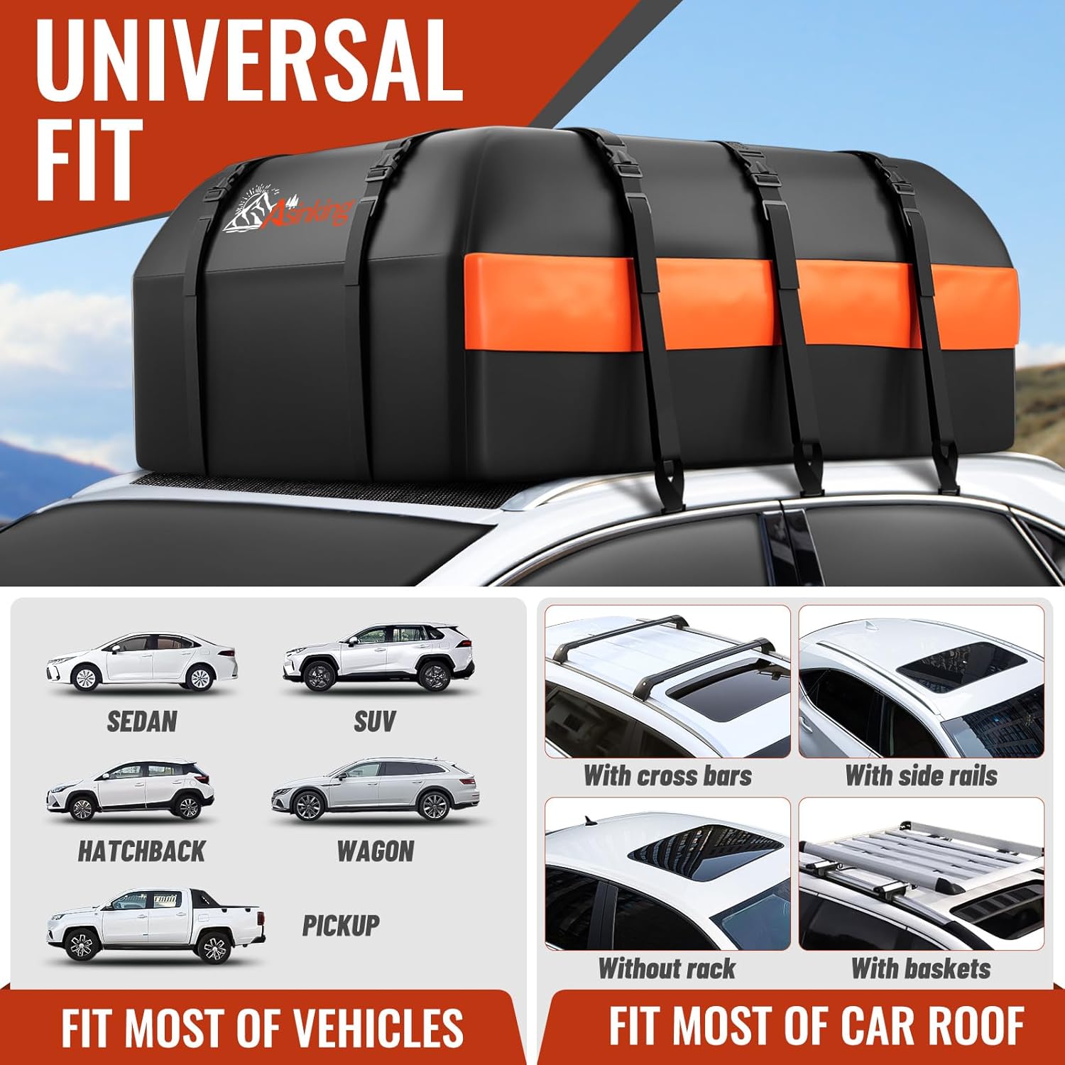 - [SECURE FIT & LARGE CAPACITY] Our 20 cubic feet rooftop cargo bag is compatible with vehicles with our without roof rack, the large capacity can keep the shape nicely, even when holding many luggage cases, blanket, tents, sleeping bags and more.