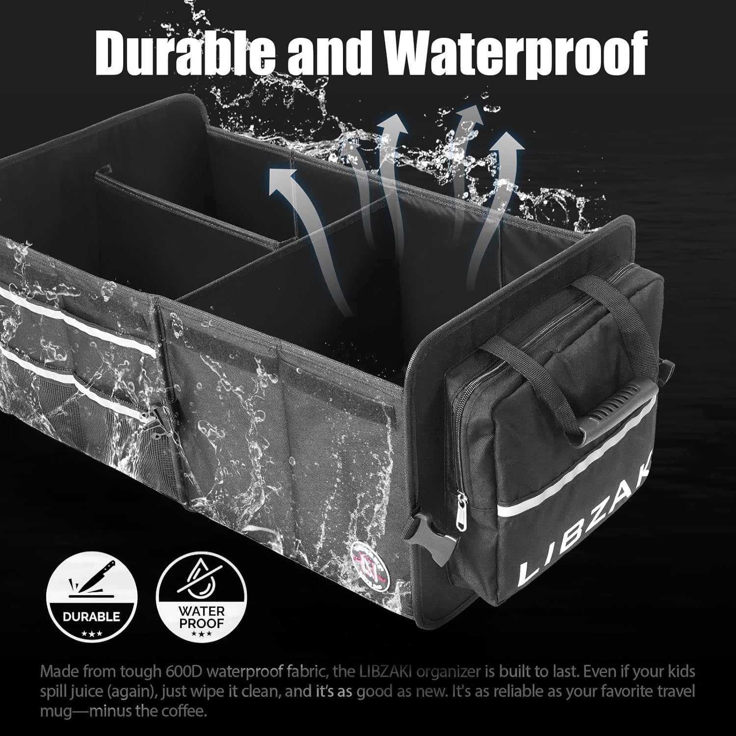 - Rugged Car Storage Organizer Built to Last Engineered for heavy-duty use! Both sizes feature 600D tear-resistant Oxford fabric + reinforced base, making this trunk organizer for car waterproof and crush-proof. Safely holds 66 lbs of cargo without sagging – from car accessories to emergency kits.