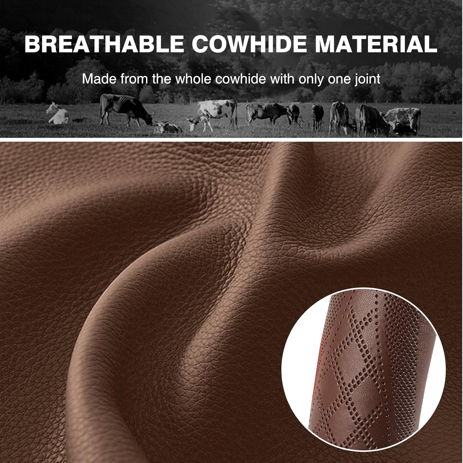 - 【Luxurious Cowhide Material】:Genuine cowhide material features sweat absorption, breathable,cold and heat resistance. It is sewn from one whole piece of material without any splicing, with only one joint.Square block design.