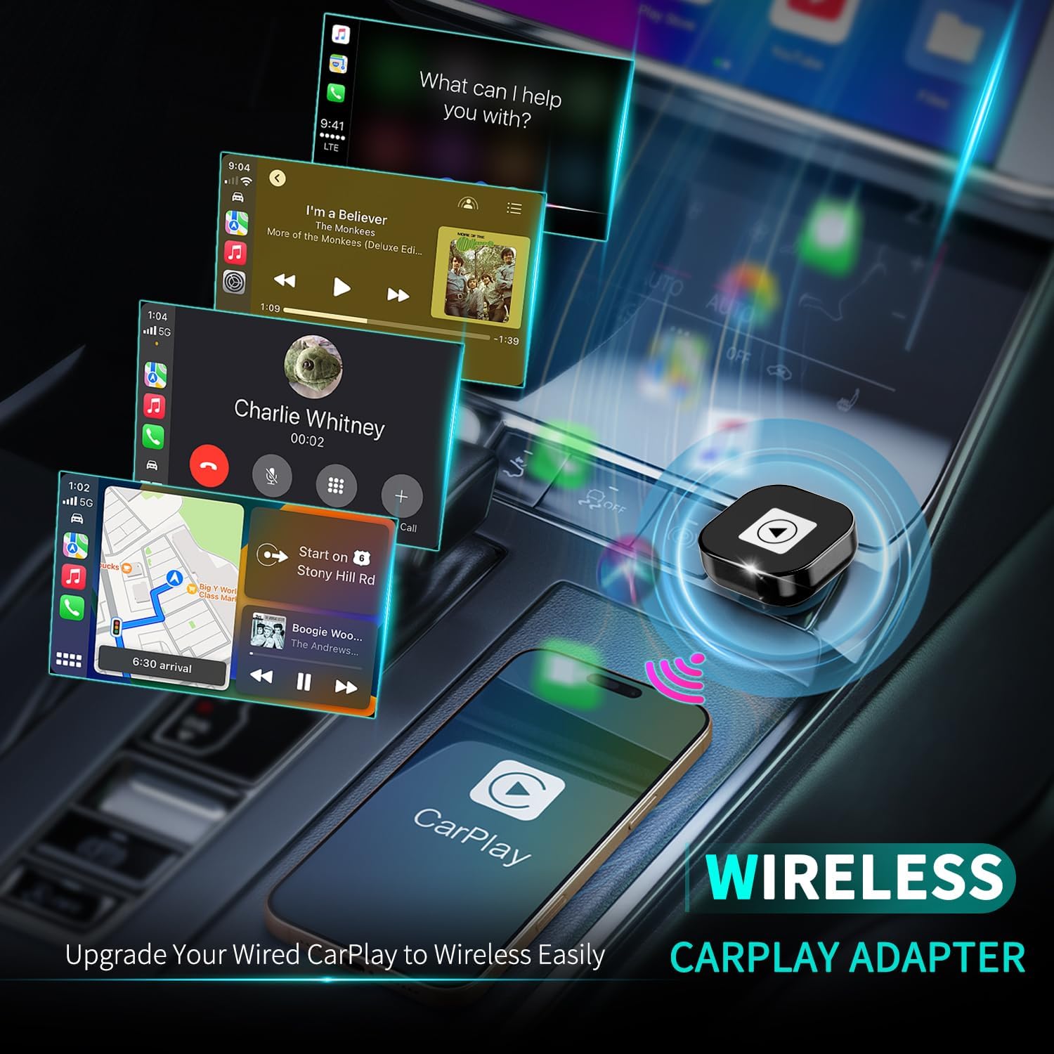 - **Ditch the Clutter โ Experience True Wireless Freedom!** โ Tired of fumbling with cables every time you get in the car? Our Wireless CarPlay Adapter is the smallest,most reliable solution,that converts your factory wired CarPlay to wireless in seconds