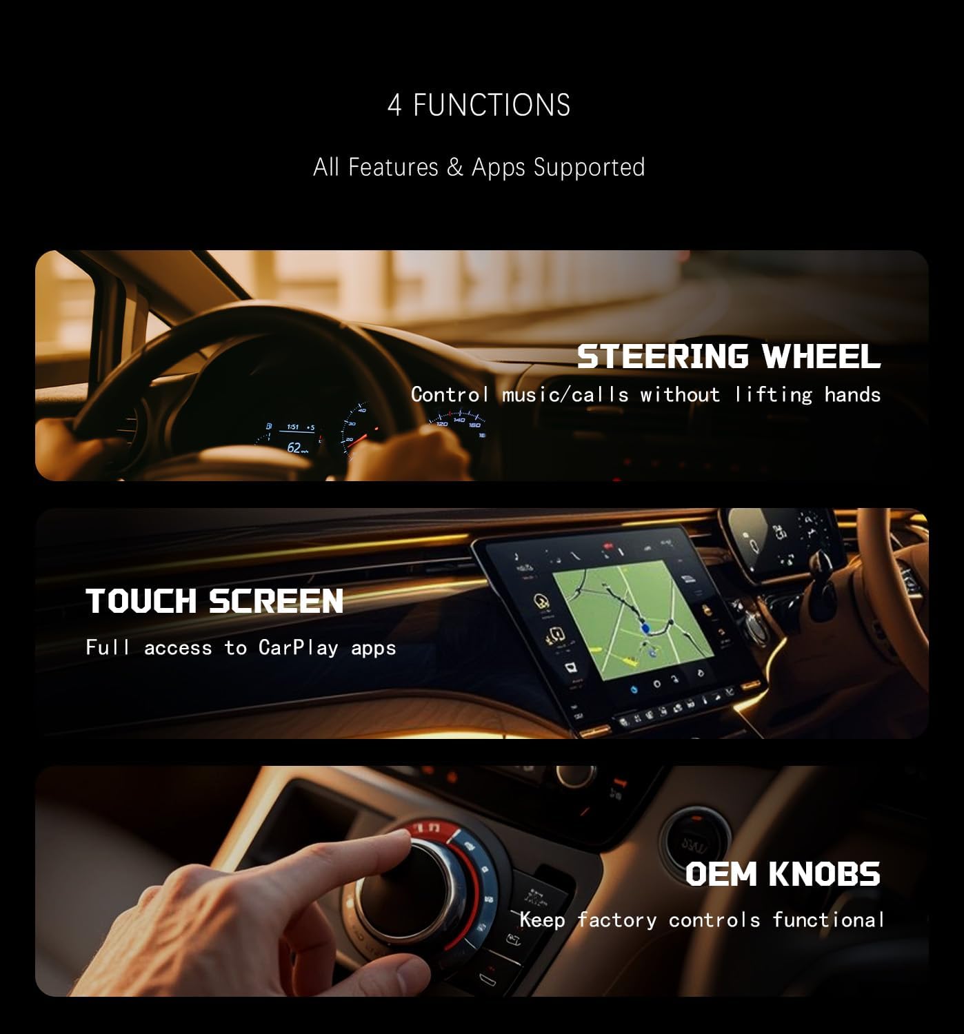 - 【Safe, Durable, and Always Ready】Always Stay Plugged In. wireless CarPlay Automatically Shuts Off When Your Engine Stops. No Charging Needed, Enjoy Hassle-Free Connectivity