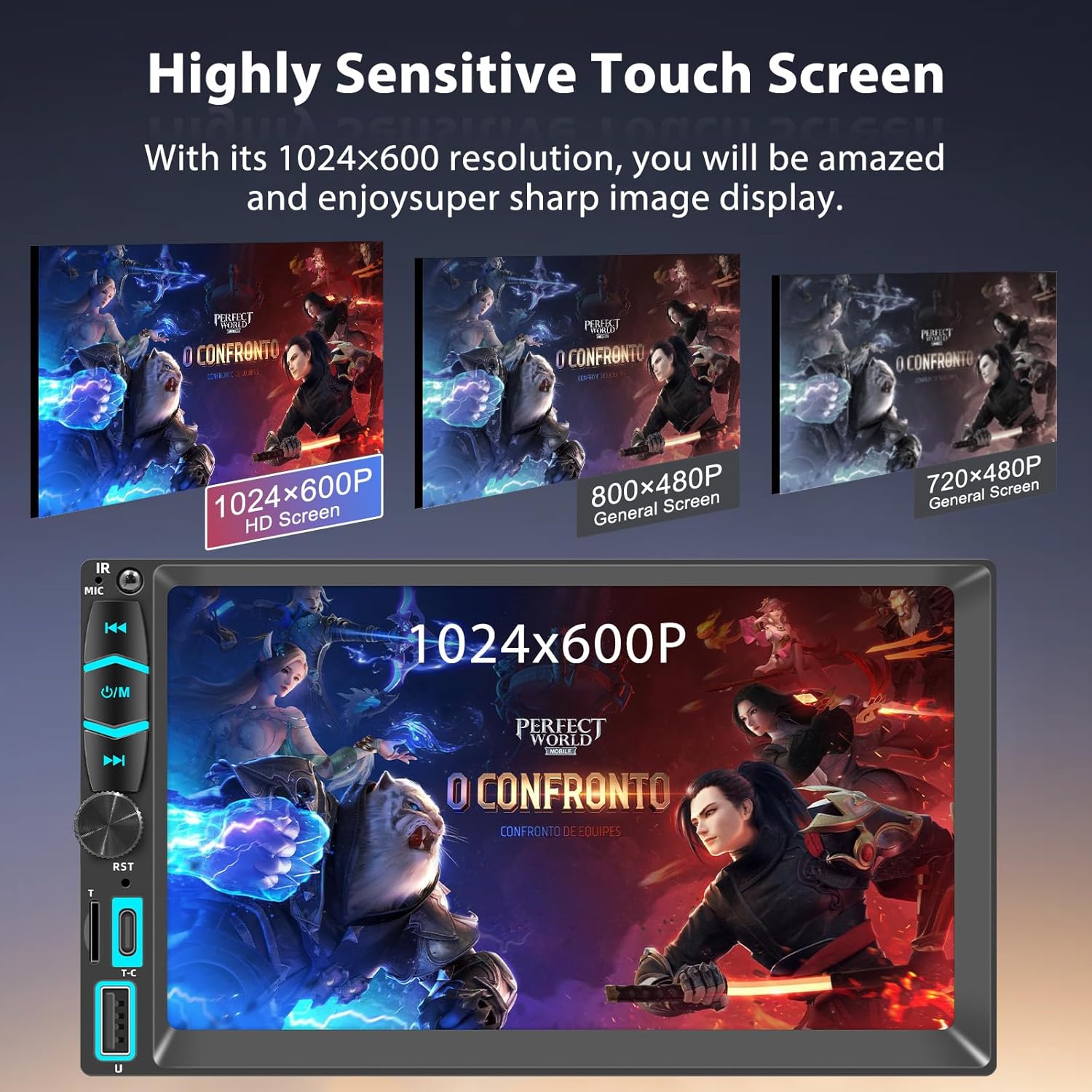 - 【7” IPS HD Carplay Touchscreen with Mirror Link】The wireless carplay stereo both for Android & iOS system, Use the mirror link function,The car radio to mirror your phone's image onto the car radio screen.You can play your favorite movies and video playback, HD car play touchscreen with resolution of 1024x600, vivid colors use for navigation, entertainment, and more to add fun to your trip!