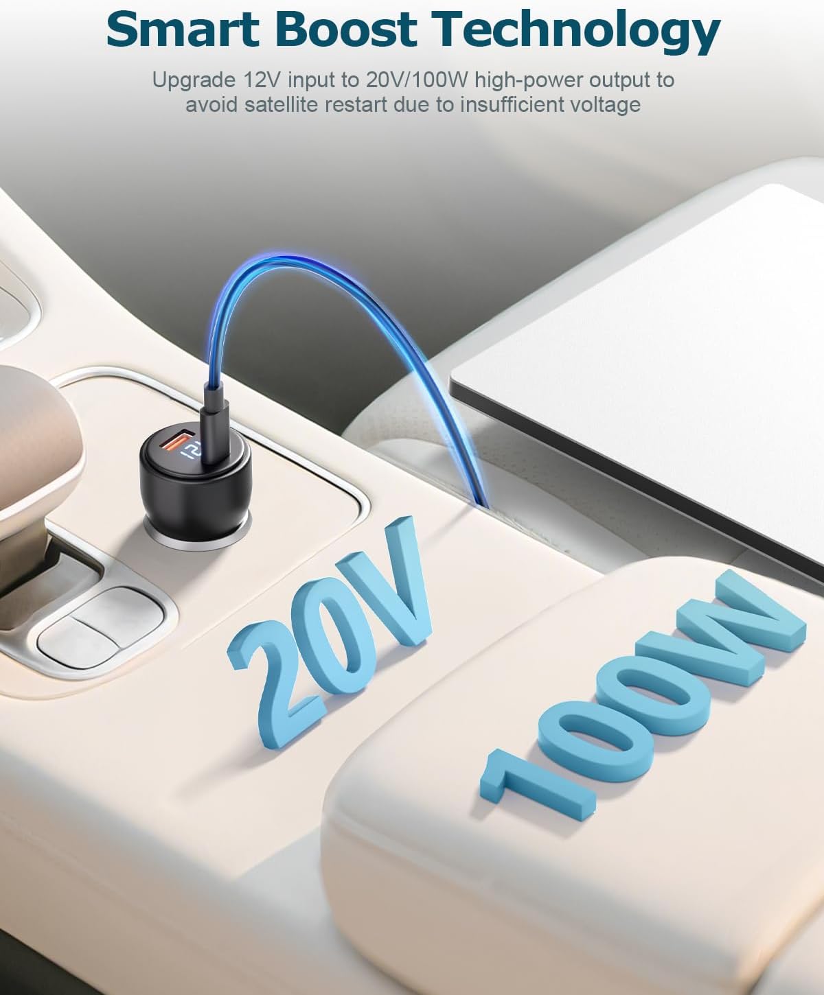 Starlink Mini USB C Power Cable 5.9FT 3 in 1 Starlink Mini Car Adapter DC Power Cable and Car Charger Smart Boost 12V to 20V/100W with Digital Display Durable USB C PD 100W and USB A 18W Port 1.8M