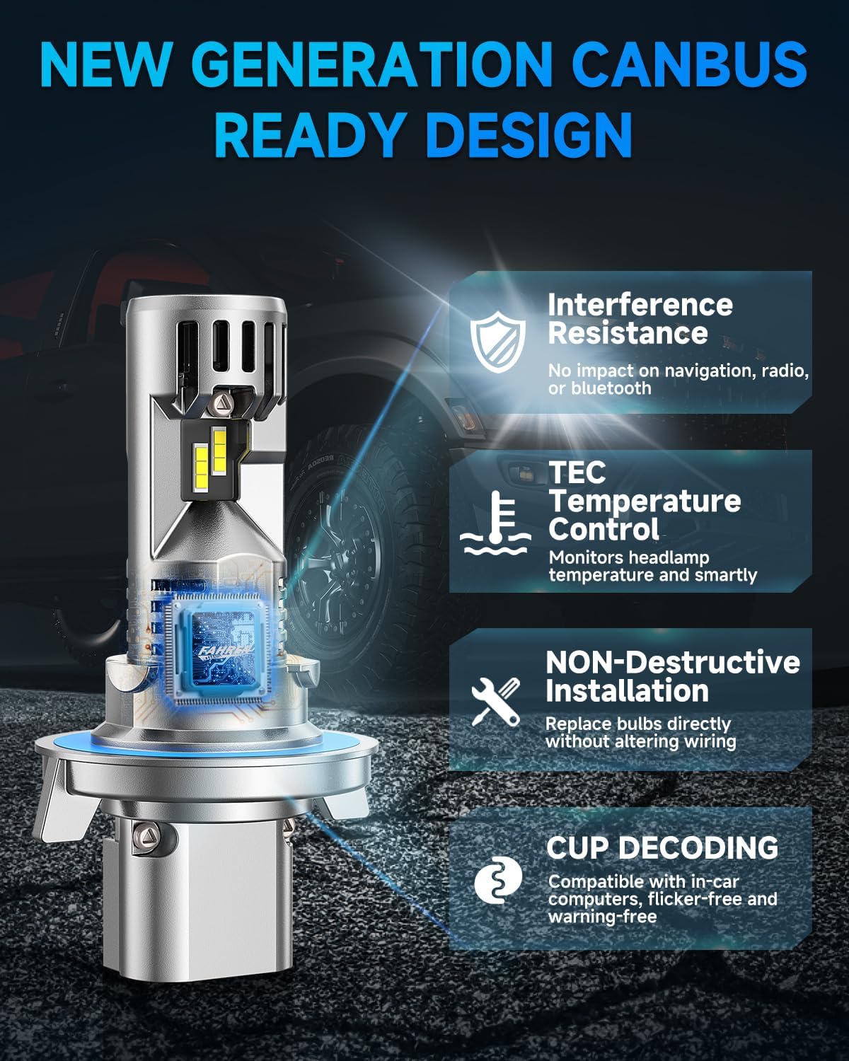 - 【98%+ Vehicle Compatibility】Thanks to built-in CANBUS technology, these H13 bulbs are compatible with over 98% of vehicles, eliminating flickering and decoding issues. Please note that 's vehicle compatibility tool may not always be accurate, so verifying your bulb size through your vehicle's manual or original bulb part number is recommended. If you have any doubts or require a decoder, please get in touch with for assistance.