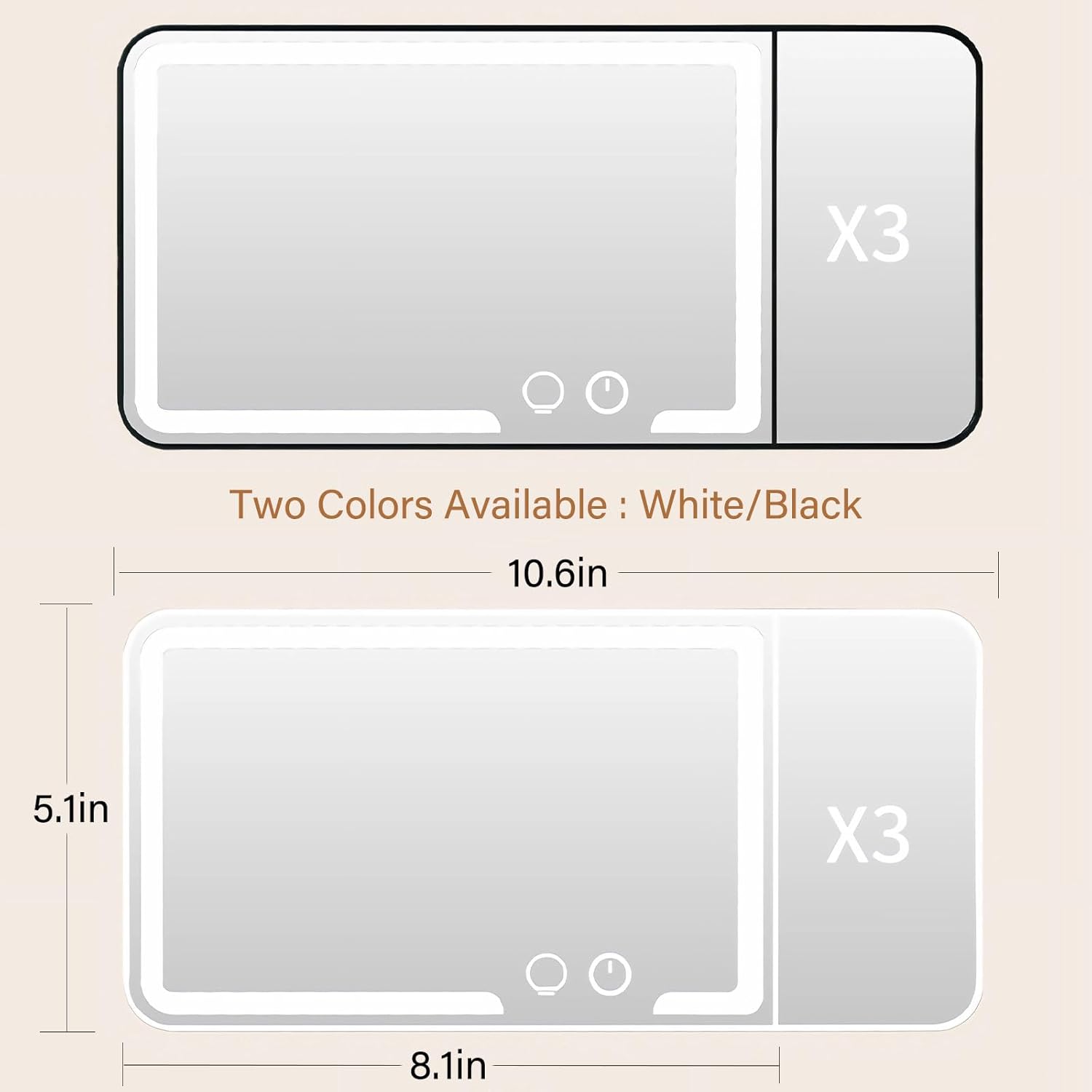 - 【SMART TOUCH MEMORY CONTROL】There are two touch sensors, simply touch one of touch switches to turn on and off. Touch screen to switch 3 colors light modes: cool white light, natural light, warm yellow light. Memory function makes this mirror with lights return to the same brightness and color when you last using