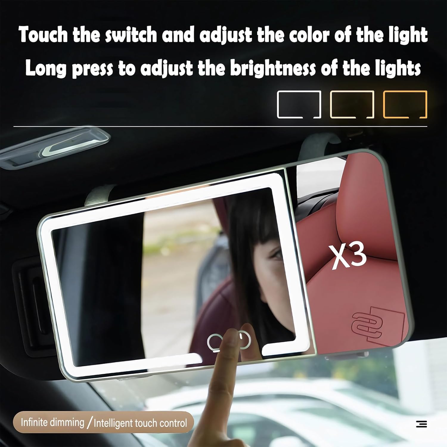 - 【2025 UPGRADE】- This Car LED lights vanity mirror has been upgraded with a 3x magnifying mirror screen for details make up on facial features such as eyes, nose, eyebrow, etc,. Create an extremely meticulous makeup all around. 60 inches/152 cm upgraded makeup mirror power cord, no need to dismantle the sunshade to charge. No worry about the trouble caused by too short power cord