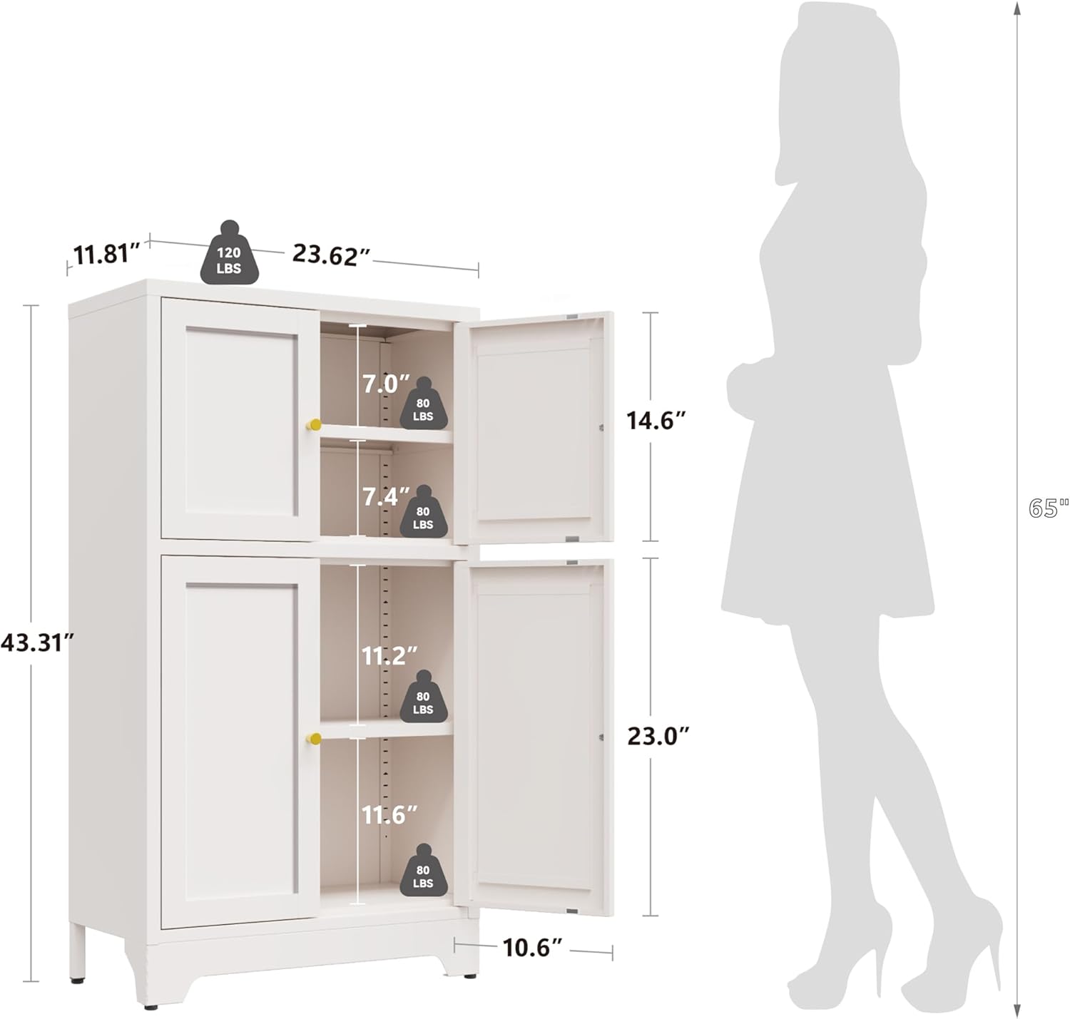 - [ROBUST & STABLE] Metal Storage Cabinet is manufactured by a duty steel frame, allows each shelf able to hold up to 60 pounds ,metal cabinet doesn't smell at any time,Comes with anchor hardware to prevent tipping over or accidents