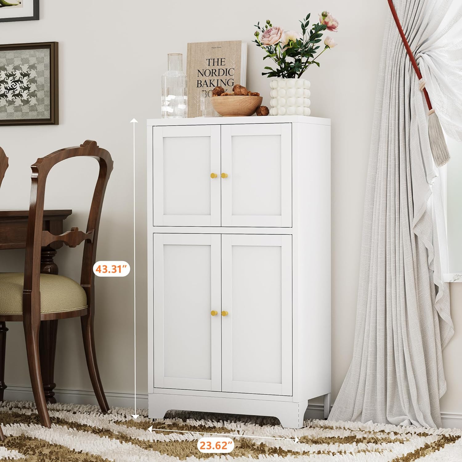 White Bathroom Floor Cabinet, Metal Storage Cabinet with 2 Adjustable Shelves & 4 Doors,Freestanding Sideboard for Dining Room,Living Room, Home Office