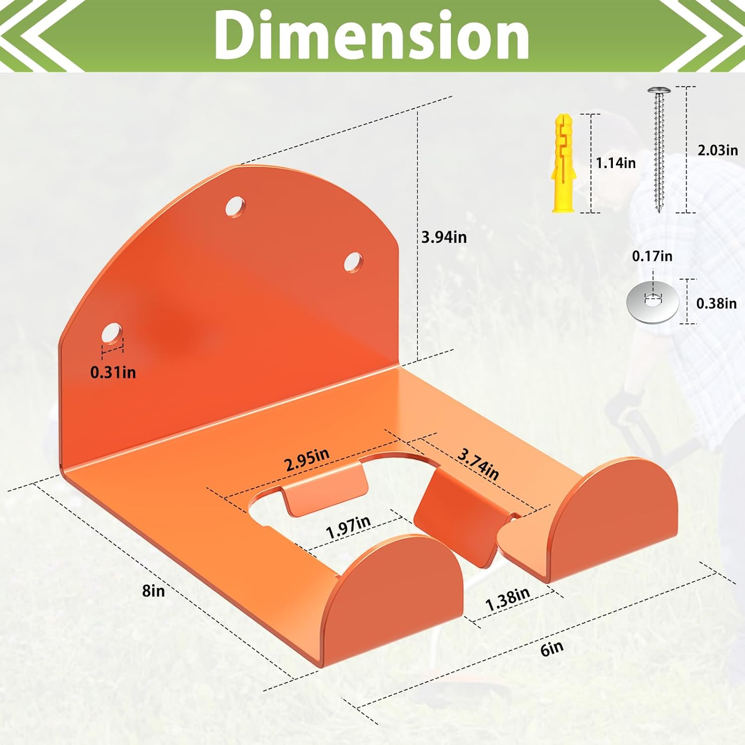 - 【High Quality】The Weed Wacker Hanger made of premium steel, which is sturdy and durable, and the orange surface coating makes it water and rust proof, making it suitable for a long time. Smooth edges do not hurt your hands and tools