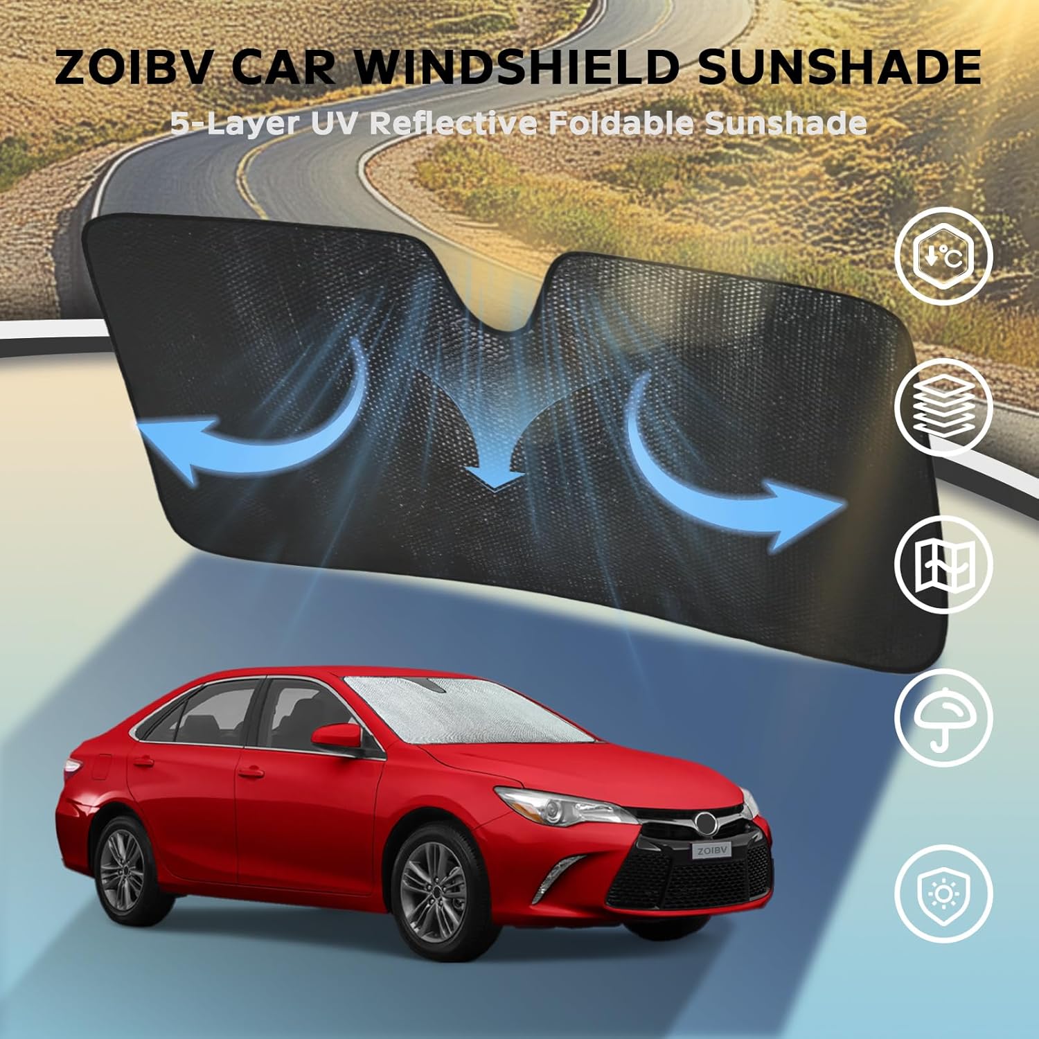 - Precise Fit: This sunshade designed specifically for the Toyota Camry 2012-2017 front windshield. Blocks 99% of infrared radiation; reduces interior temperature. Protects dashboard/leather from radiation and high temperatures, preventing cracking
