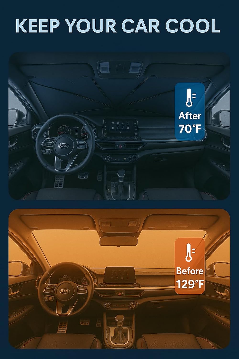 Proadsy Windshield Sun Shade Umbrella for Kia Forte 2019-2025 Foldable Car Umbrella Sunshade with Soft TPU Handle Spring Structure Crystal Cooling Material Protect Car from Rays & Heat