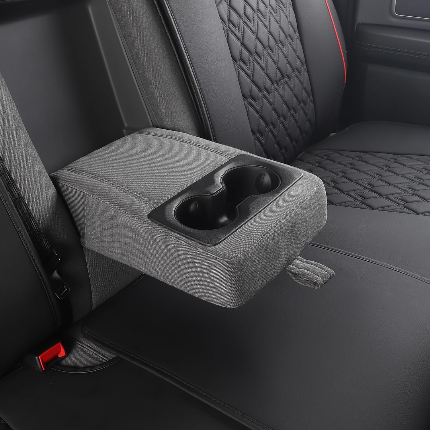 JOJOBAY Car Seat Covers for Dodge Ram,Fit 2009-2025 1500/2500/3500 HD Pick-up Truck,Crew,Regular,Quad,Mega Cab,Waterproof Synthetic Leather Seat Covers (Rear Seat Cover,BlackRed)
