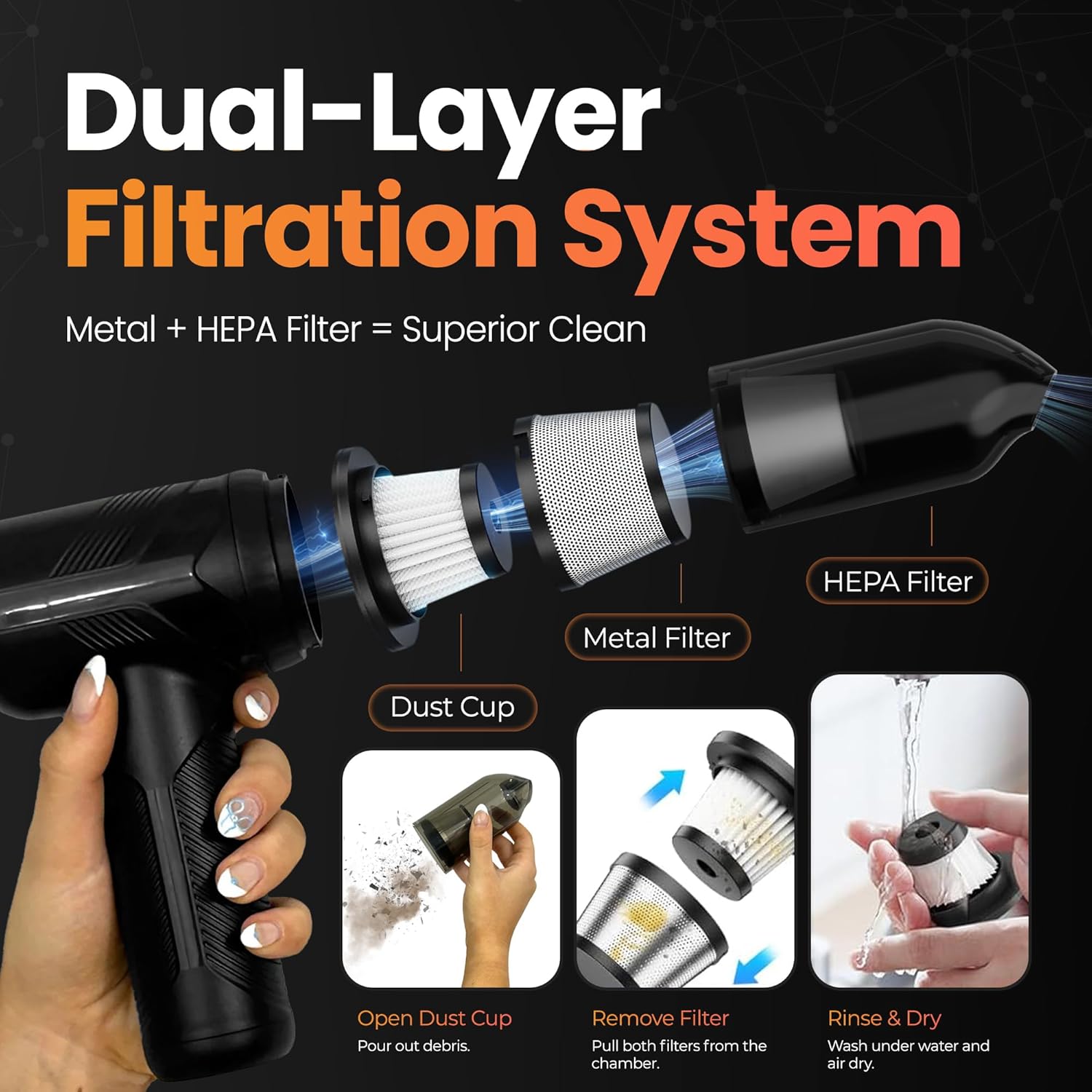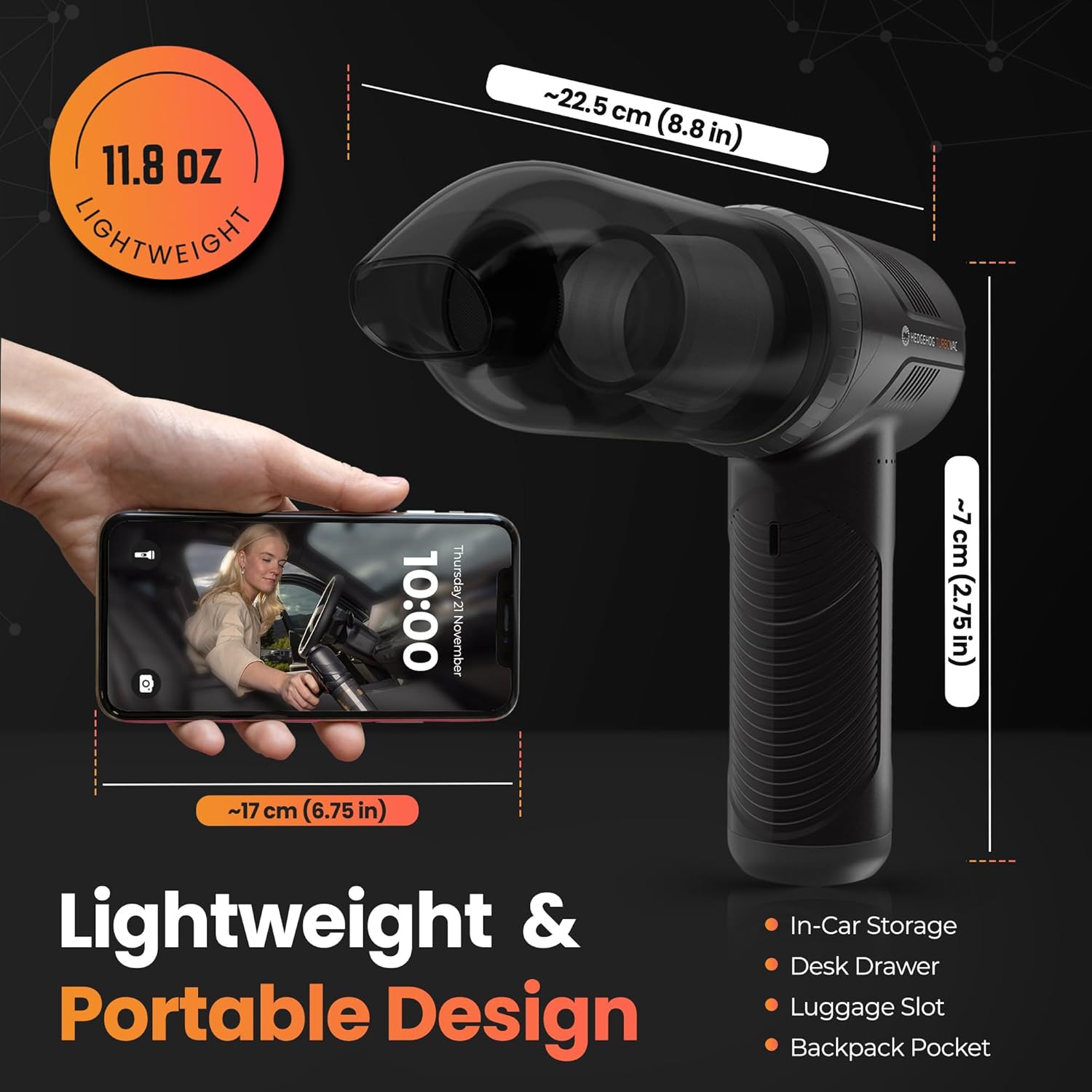 - Lightweight & Portable - This hand held car vacuum blower weighs only 1.4 lbs for easy carry and storage—ideal for car cleaning, home use, or camping on the go