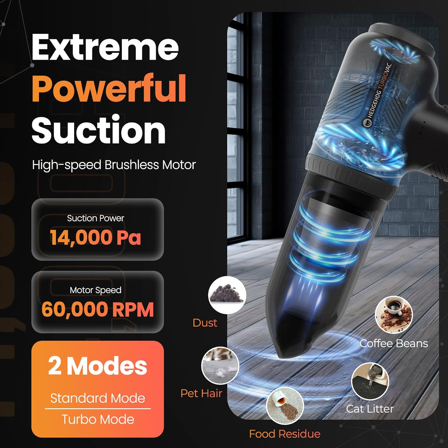 - 3-in-1 Versatility – The Hedgehog TurboVAC handheld car vacuum cleaner is more than just a vacuum! With Hedgehog patented technology, works as a powerful vacuum, air blower, and air pump-ideal for cleaning debris, inflating mattresses, and blowing out hard-to-reach dust