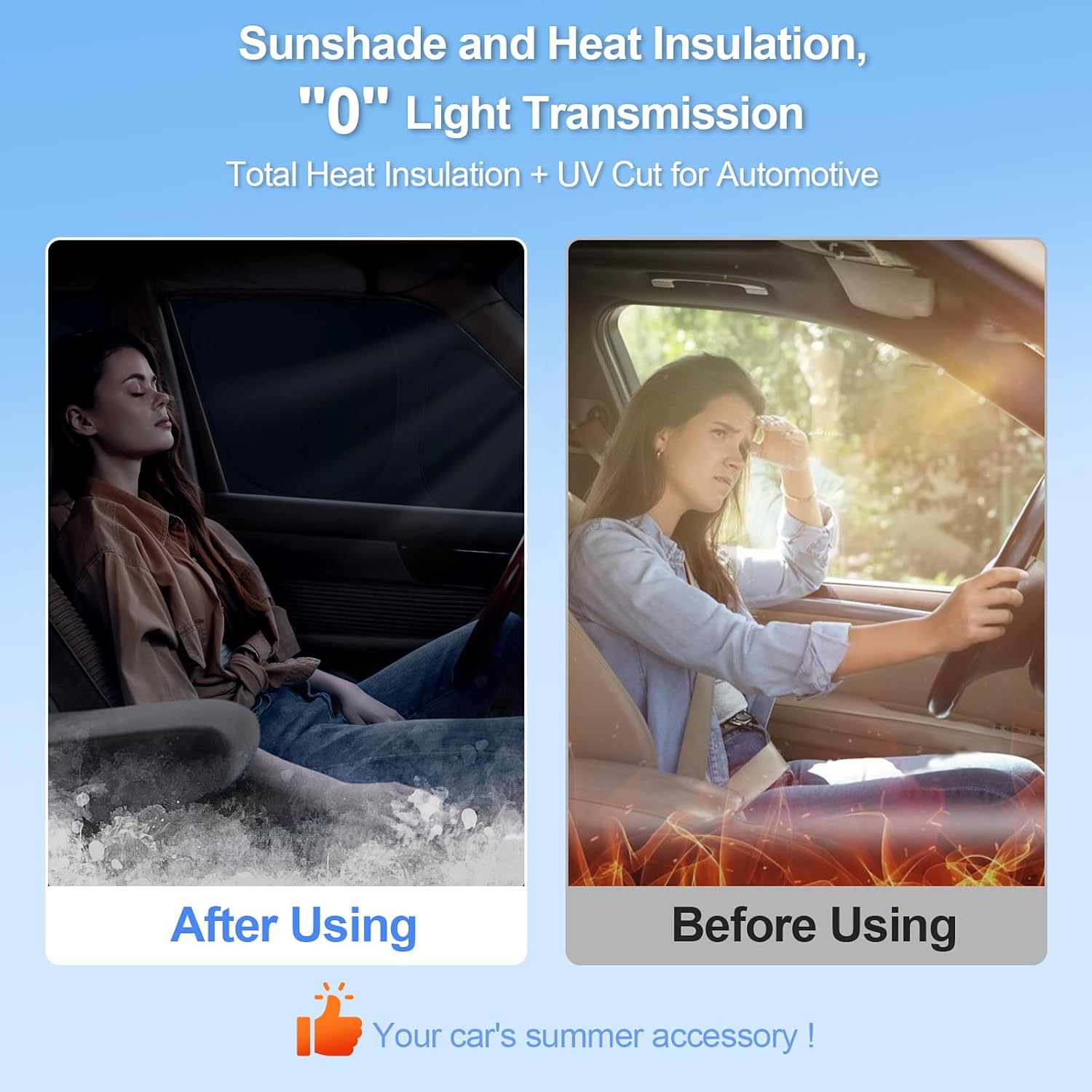 - 99% Sun Protection & Heat Reduction:Double-layer heat shield blocks 99% of harmful UV rays and reduces interior temperature by up to 40Β°F.Prevents "hot car" syndrome β no more burning steering wheels or suffocating heat when you enter.Say goodbye to scorching seats and steering wheels!