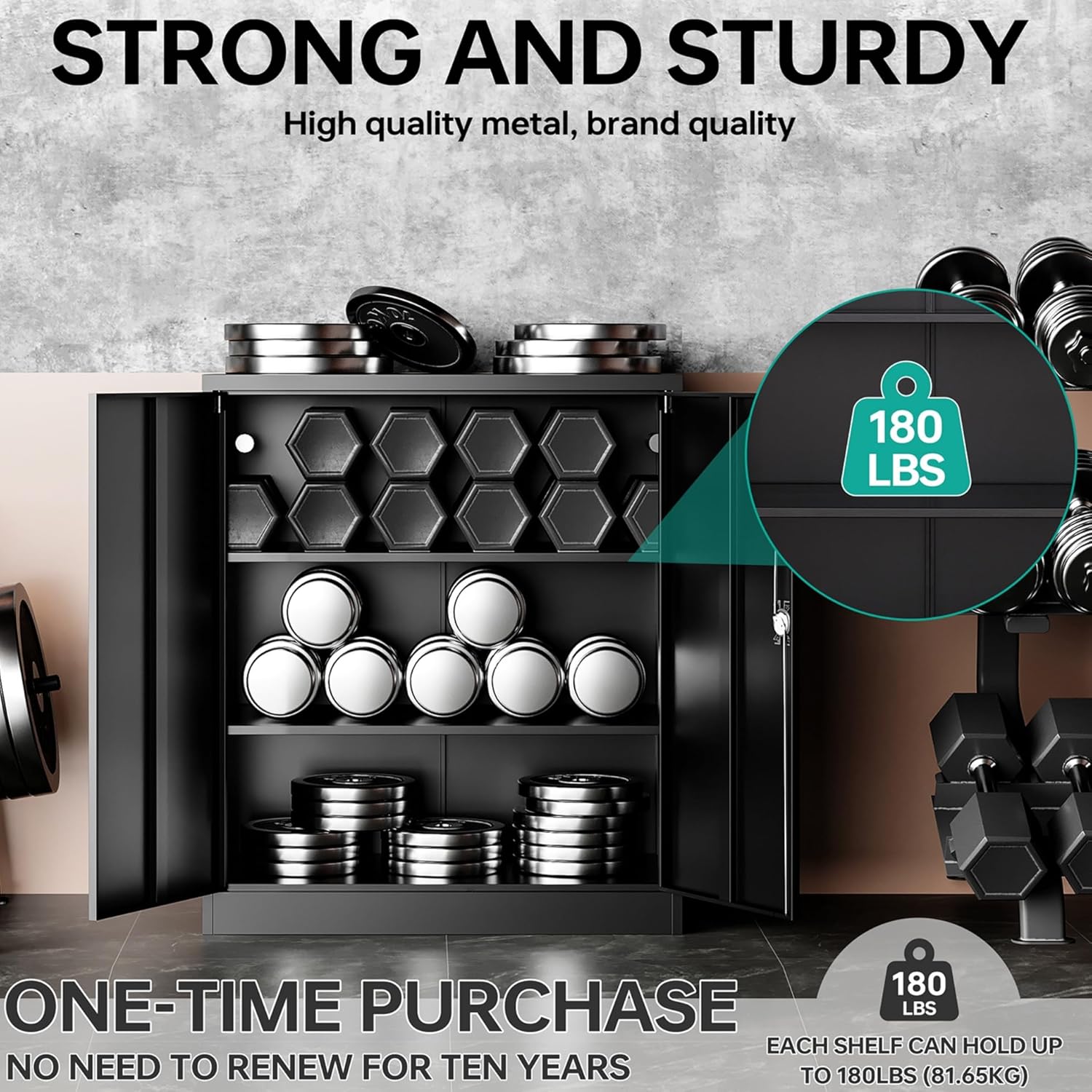 - High-quality all-steel structure: 36 inch tall metal cabinet is made of the top quality steel through exquisite craftsmanship; Whole-in-one reinforced heavy gauge steel deluxe welded frame; 2 locking doors are also strengthened by with additional steel bars; The special coating can protect cabinet from scratch and rust; Durable and available for years.