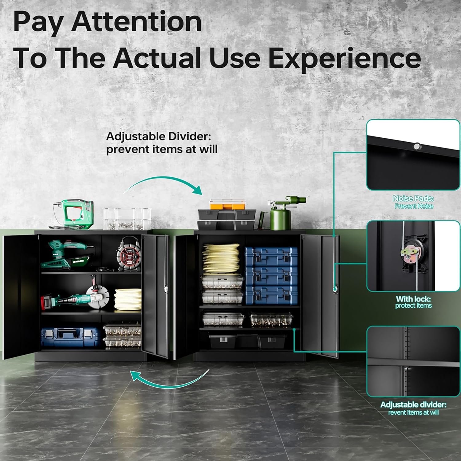- Be Quiet & Safe with Humanized Design: No loud bangs and crashes, this metal cabinets with doors and shelves have anti-collision reinforcements, keeping quiet while protecting the cabinet when you opening or closing the door.2 wing doors with a 180°opening angle.Pre-holes on the back, enable to be mounted to the wall.To prevent tip over this furniture must be used with the wall attachment device provided.;
