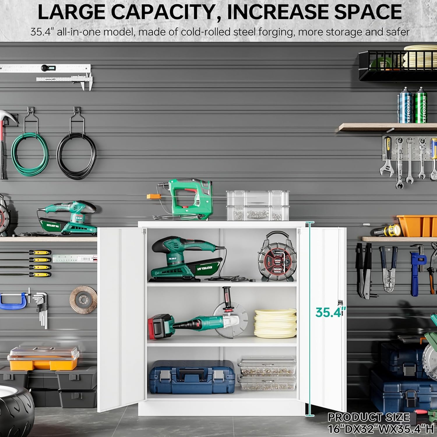 - ✔️【High-quality All-steel Structure】: 36 inch metal cabinet is made of the top quality steel through exquisite craftsmanship; Whole-in-one reinforced heavy gauge steel deluxe welded frame; 2 locking doors are also strengthened by with additional steel bars; The special coating can protect cabinet from scratch and rust; Durable and available for years.;