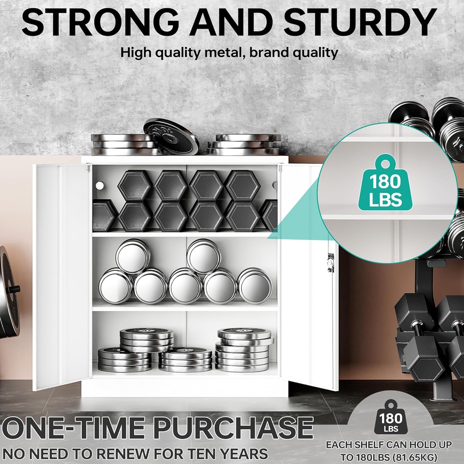 - ✔️【Door with Lock and Magnets】: locking cabinet adopts an upgraded version of the 3-point lock system, and the steel rods are thickened to provide higher security for your valuables and important items. lockable storage cabinet also includes 2 spare keys.;