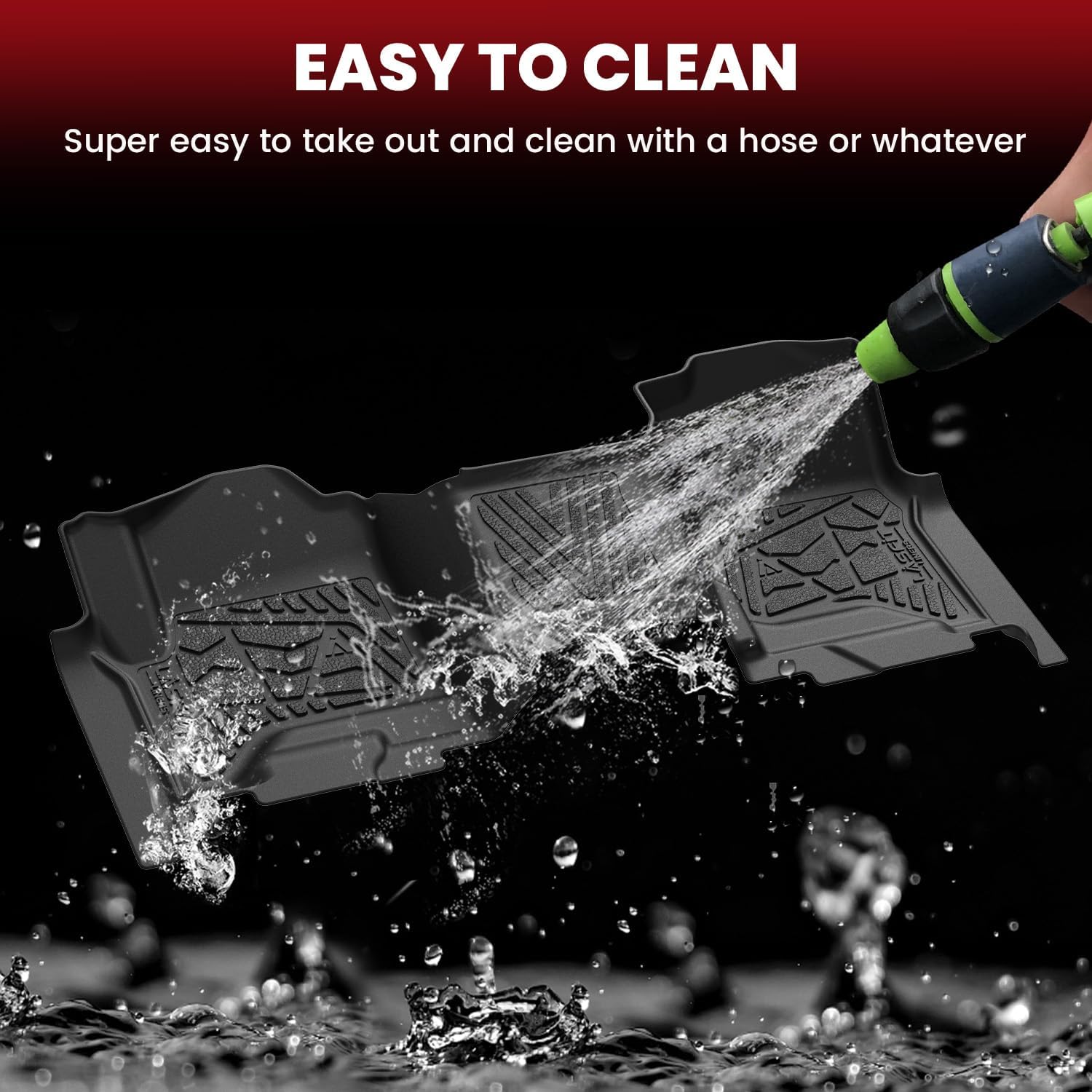 - ăDurable & Safe MaterialăThese floor mats for GMC Sierra 1500 2500HD 3500HD use the recyclable TPE material for a soft touch and exquisite finish. It's skid-proof and easy to clean in just a few minutes.
