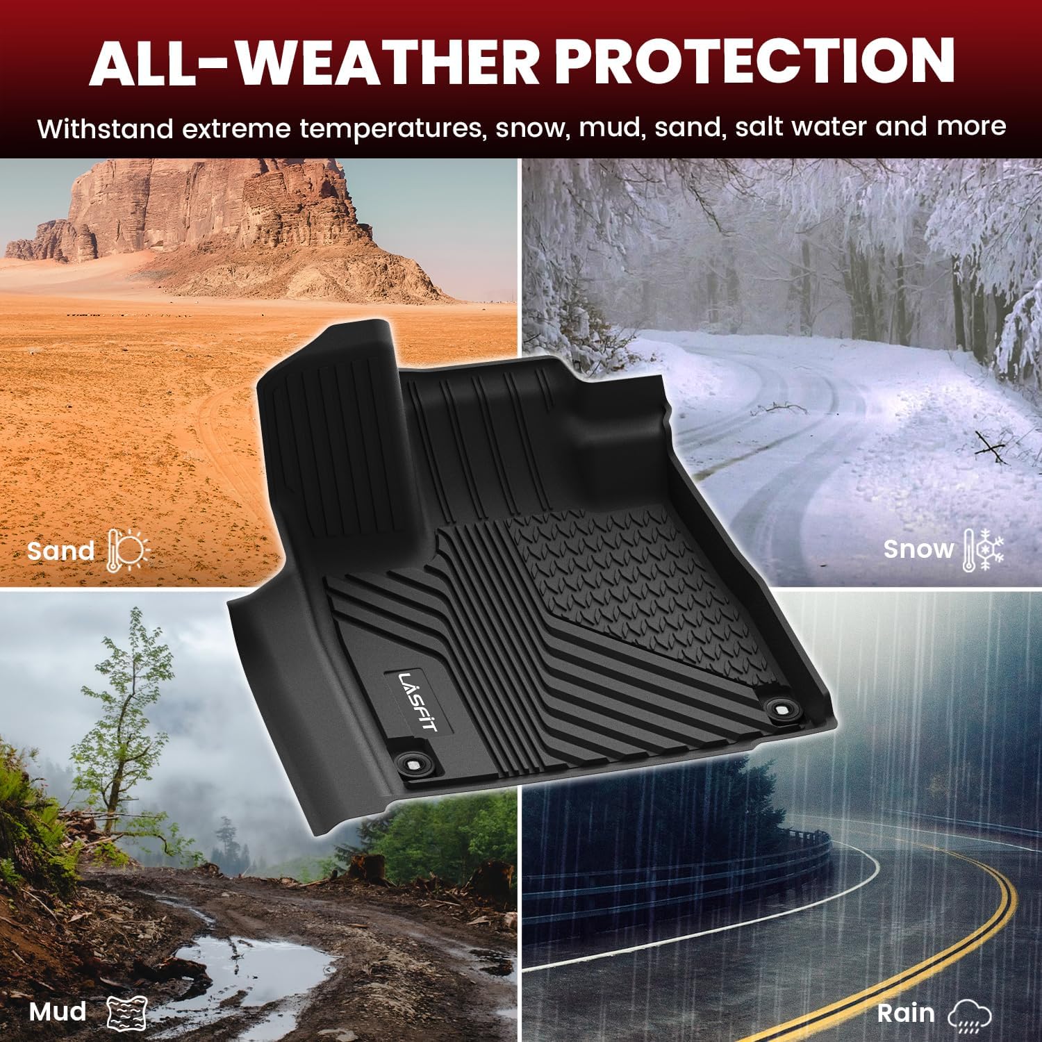 - ALL WEATHER PROTECTION - Lasfit Mdx Cargo mats Shield your floor from dirt, mud, salt, rain, snow, and even hot summer temperatures. Cleaning up daily wear and tear off our car mats is a breeze.