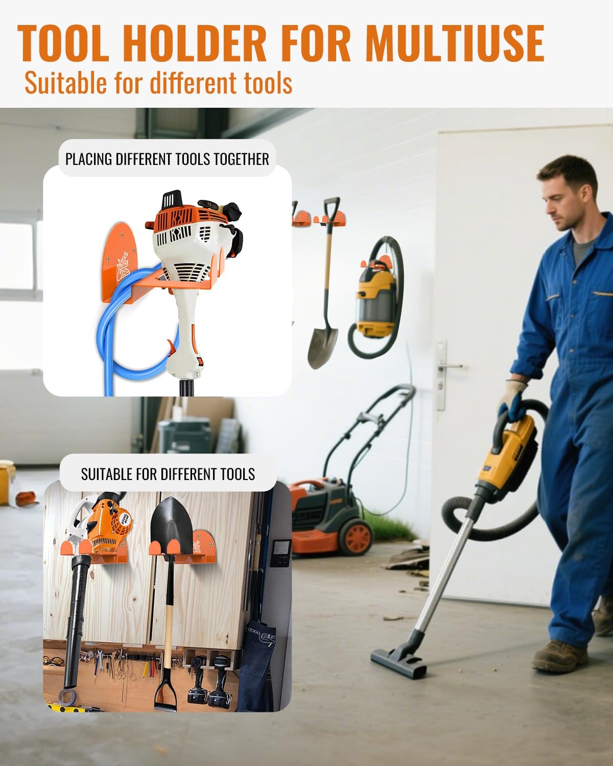 - đ„ăHeavy-Duty Wall Rack â Alloy Steel Garden Tool OrganizerăBuilt with 3mm thickened alloy steel, this garage organizer delivers 30% higher load capacity (180LB) than standard racks. The rust-proof powder coating ensures durability in humid garages/sheds, while the orange-painted finish adds visibility and extra anti-corrosion protection.Thick sponge liners protect chainsaw surfaces from metal scratches.